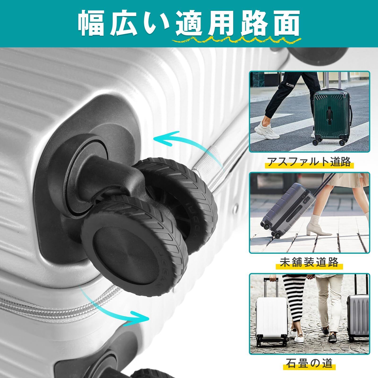 【キャスターカバー 脱落防止】キャスターカバーはトランクホイールの小包の面積を拡大したデザインを採用しており、車輪を多面積で包むことができる。キャスターカバーの落下を効果的に防止する。キャスターカバーは、車輪のほこりや土、その他の汚れがスーツケースに接触するのを防ぐこともでき、何度旅行に行っても荷物はきれいで整然とした状態を保つことができます