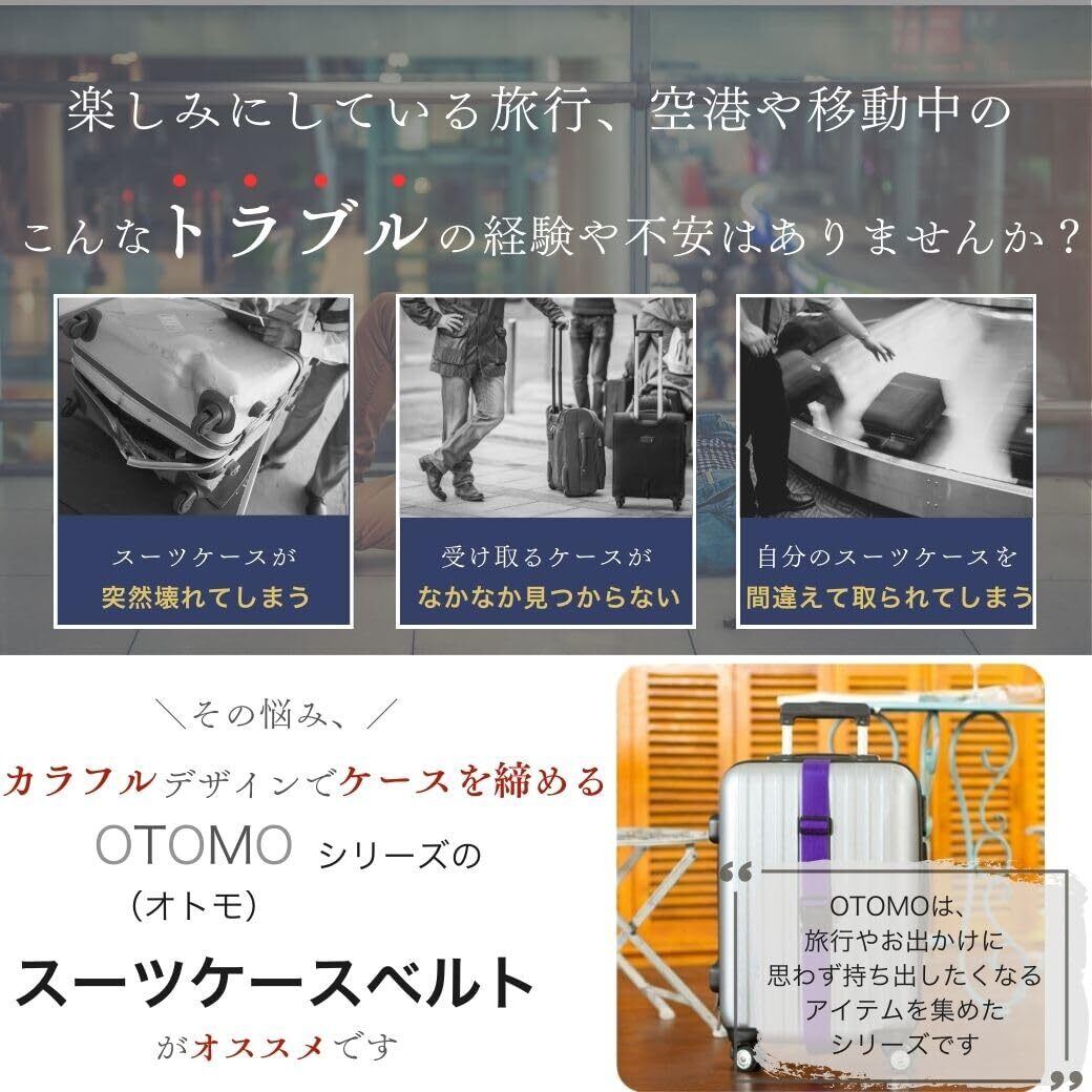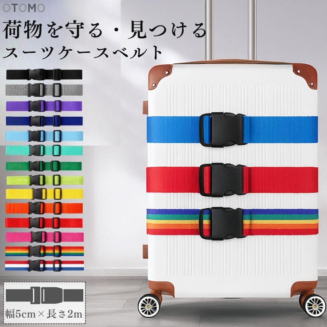 カラフルな組み合わせでアレンジも可能なので、ターンテーブルで荷物の目印にもなる便利なスーツケースベルトです