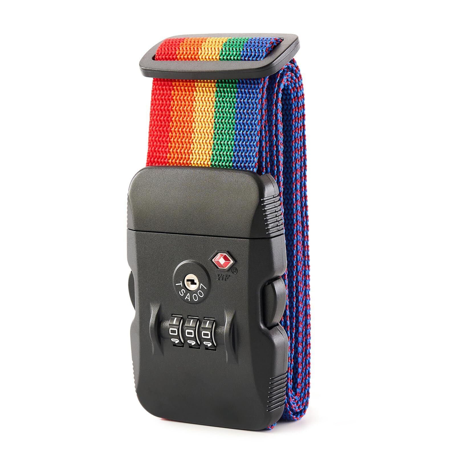 MiyabiLife スーツケースベルト TSAロック付き キャリーケース ベルト 荷崩れ防止バンド 旅行 出張用 3桁ダイヤル式 荷物固定ベルト 長さ調節可能 軽量 盗難・紛失防止 (レインボー)