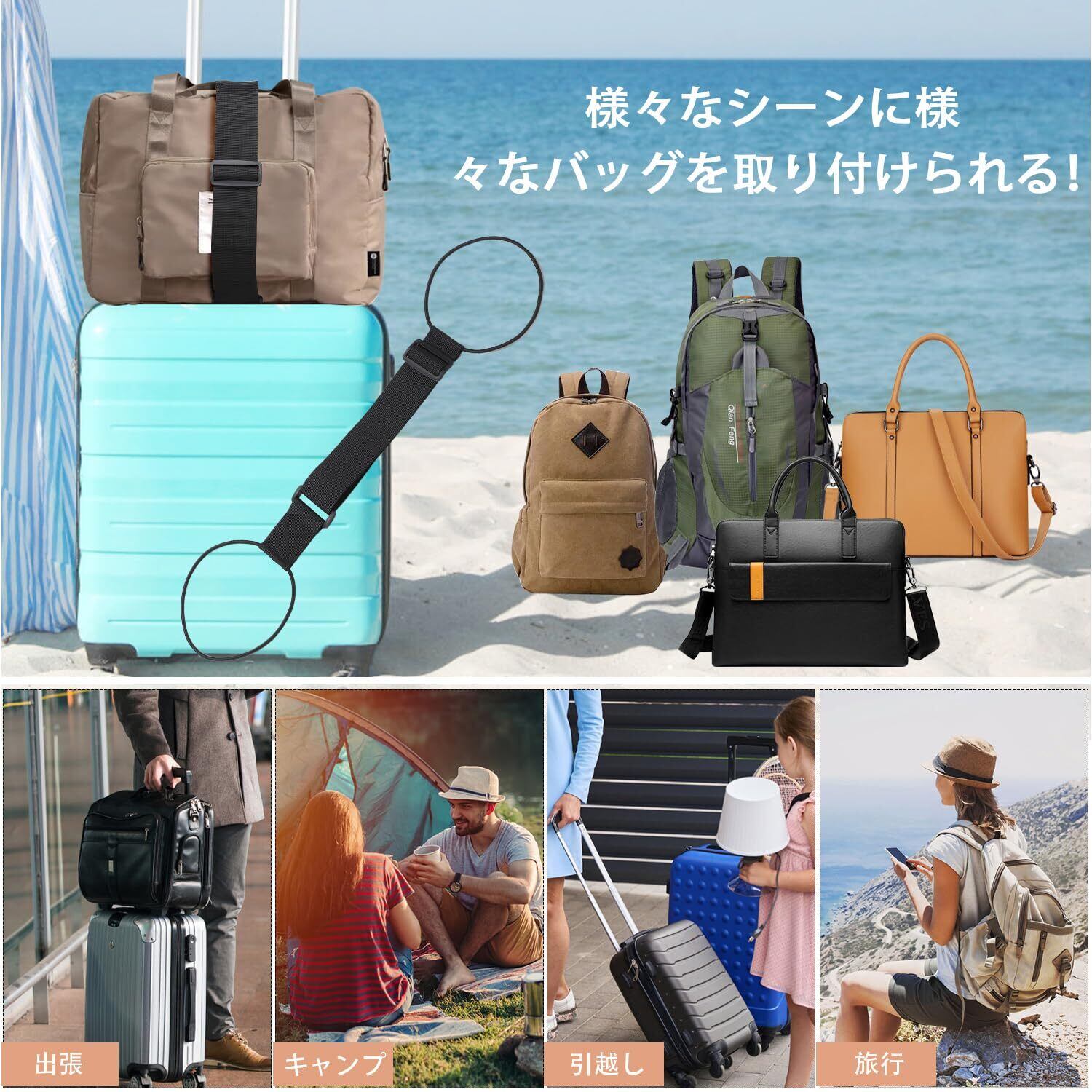 スーツケースベルト 荷物固定ベルト 旅行便利グッズ 長さ調節可能 海外旅行 旅行バッグ用 装着簡単 旅行 キャンプ 出張 引越し