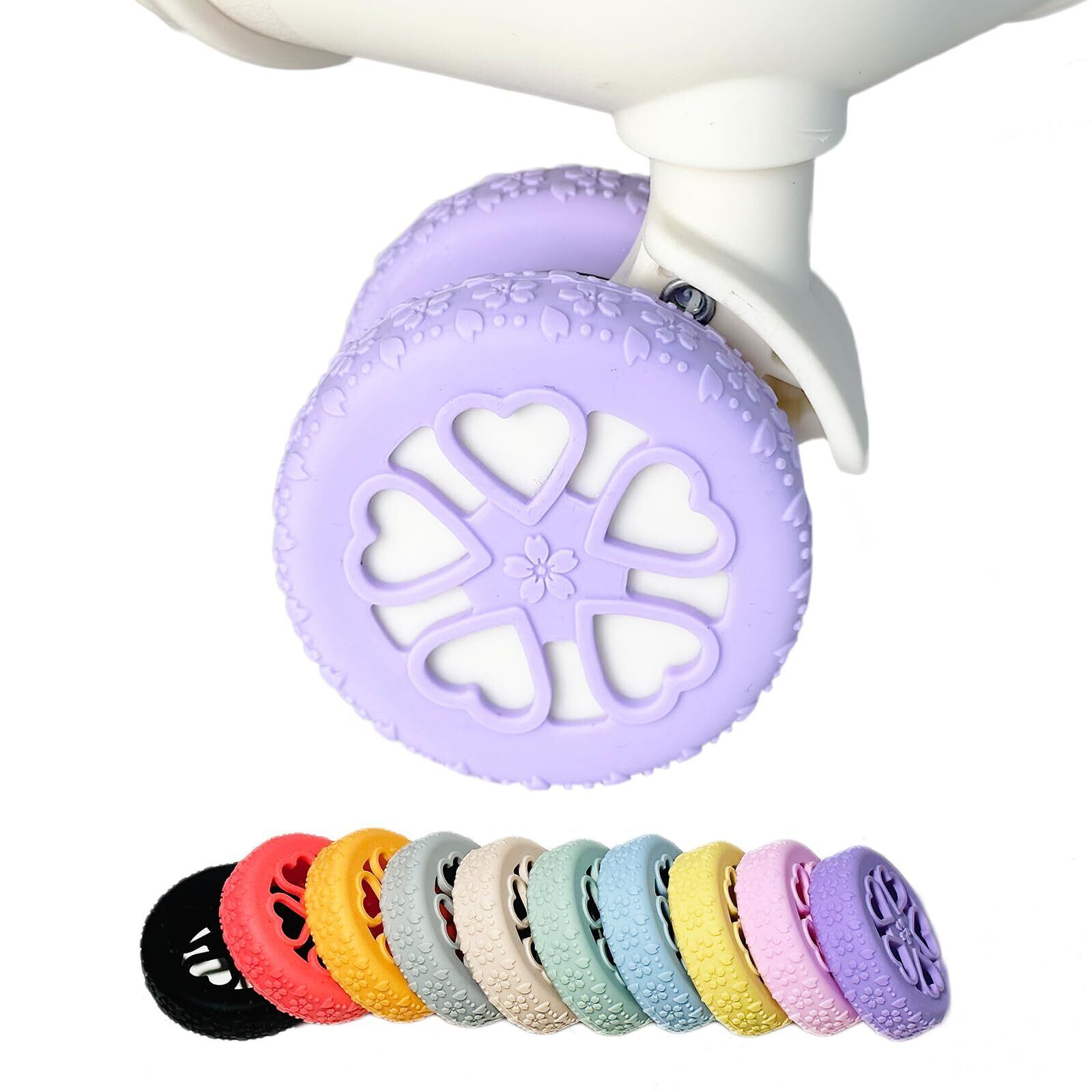 【在庫処分】[VERILADY] キャスターカバー 桜柄フルカバー 8個セット スーツケース タイヤカバー キャリーケース 車輪カバー シリコン製 防振 汚れにくい 転がり防止 地面保護 静音 傷防止 水洗い可能 簡単装着 荷物用ホイールカバー 旅行用 出張用(パープル)