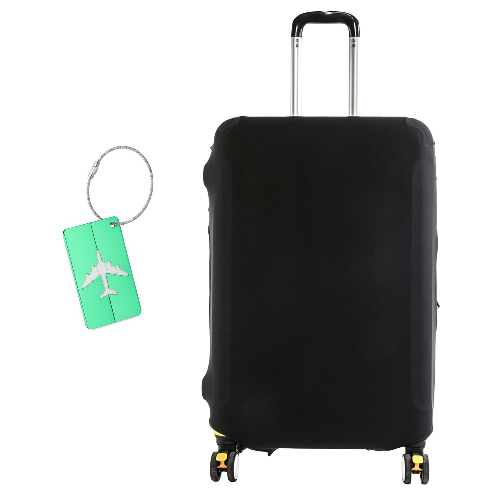 【在庫処分】[Hnonoxy] スーツケースカバー 伸縮素材 荷物カバー 布 スーツケースタグ付き スーツケースプロテクターカバー 黒 スーツケース 傷防止 カバー 防塵 洗濯可能 持ち運び 出張 旅行用