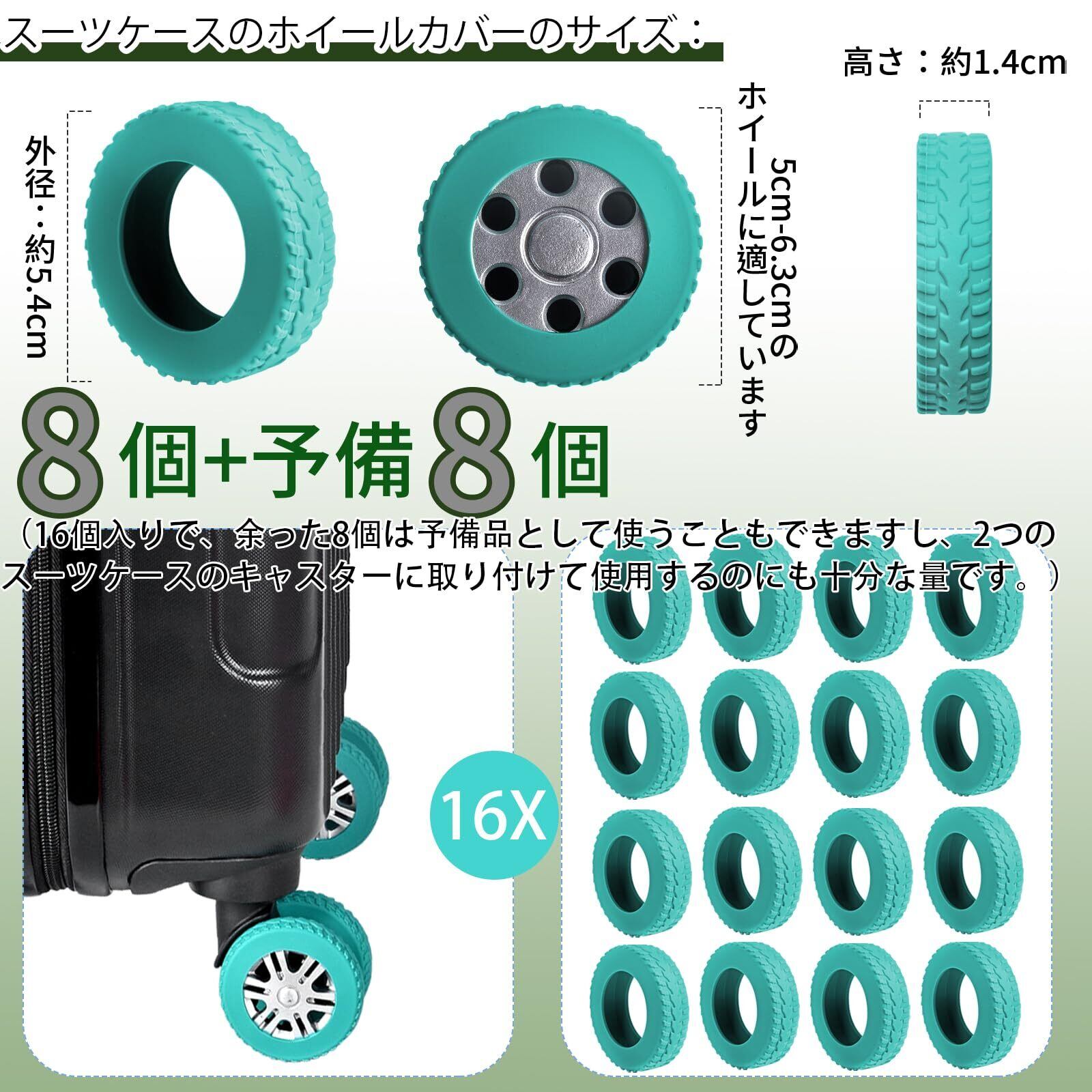 [Hanrey] 16個 静音オフロードスタイル キャスターカバー スーツケース 車輪カバー キャリーバッグホイールカバー シリコン 傷防止 キャリーケース タイヤカバー 汚れ 転がり防止 車輪保護用 荷物保護 地面保護 荷物用ホイールカバー 旅行用 アクアマリン