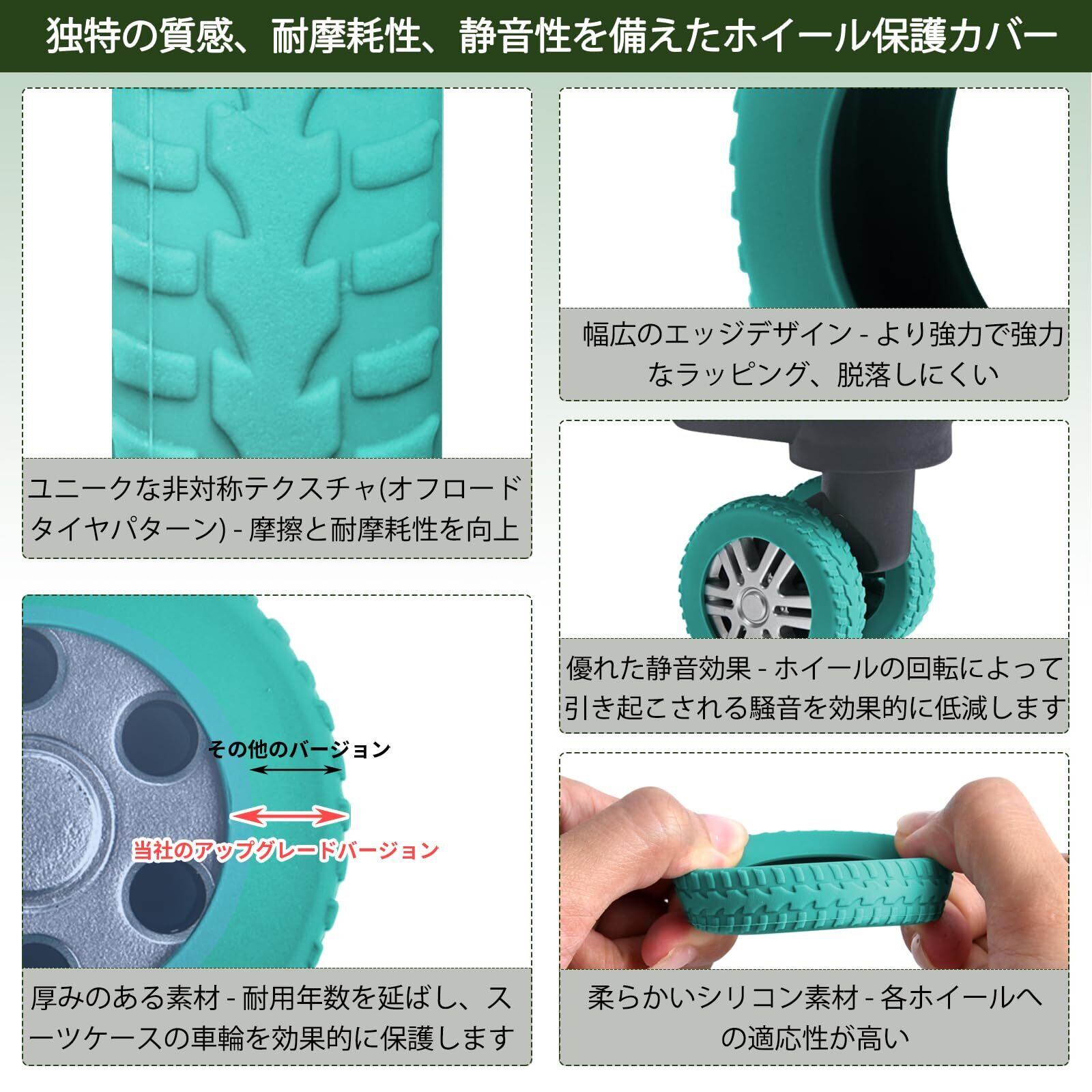 耐磨耗&防汚染&ノイズ低減: スーツケースの車輪保護セットは耐磨耗性と耐久性に優れた材料で作られており、車輪が回転する際のノイズを効果的に低減し、髪の毛の絡み付きを防止します。キャスターカバーは、塵、汚れ、その他の汚染物がスーツケースの車輪に接触するのを防ぐこともできます。それによって、スーツケースの車輪を効果的に清潔に保つことができます。摩擦と衝撃に強いスーツケースの車輪カバー - 長距離旅行でもビジネス旅行でも、当社の車輪カバーを使用することでノイズを減らし、静かな旅行体験を楽しむことができます。色鮮やかなキャスターカバーを選ぶと、ベルトコンベア上でスーツケースを見つけやすくなります。また、他人がそれを他の物と間違えるリスクも低くなります。
