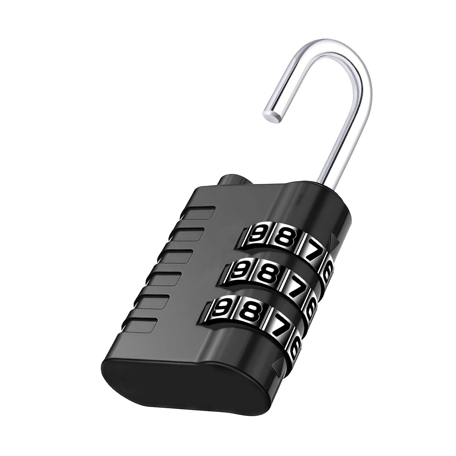 NAGE 南京錠 ダイヤル 3桁 鍵 小型 軽量 ダイヤル錠 暗証番号 盗難防止 防水防錆 補助 ダイヤルロック 学校 ロッカー 荷物 アウトドア 旅行 バックパック (ブラック,1個)