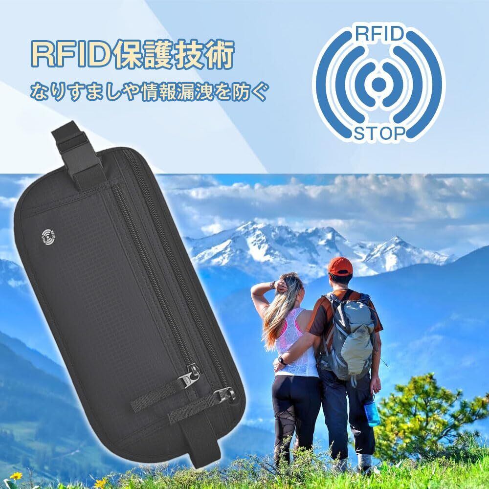 JetWave ウエストポーチ 軽量 超薄型 パスポートケース 男女兼用 スリ対策 スキミング防止機能付き 多機能隠しポーチ 旅行用 カード収納 薄型デザイン (ブラック)