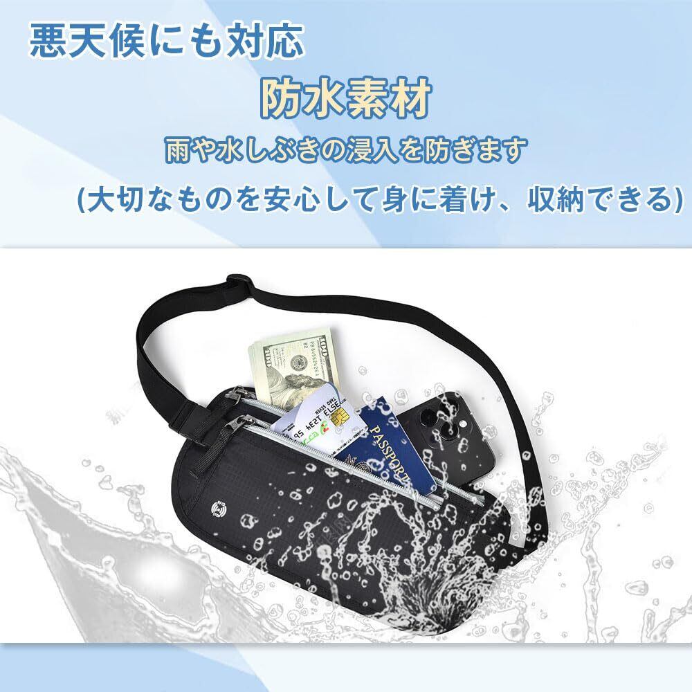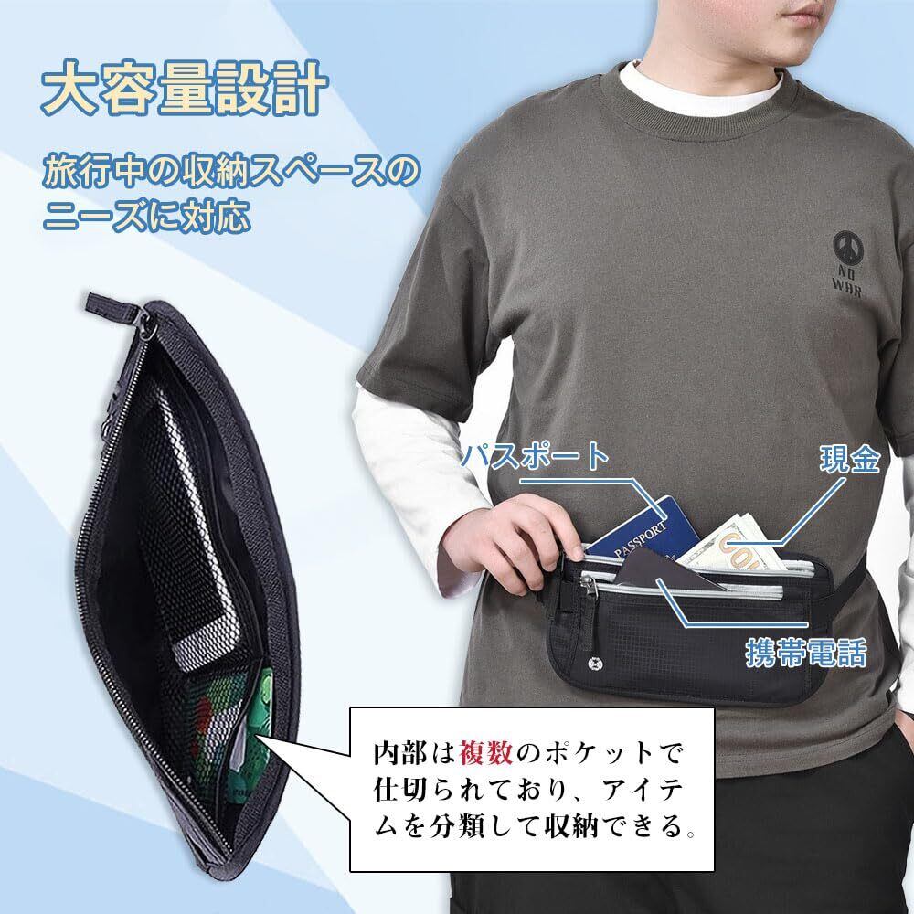 【在庫処分】JetWave ウエストポーチ 軽量 超薄型 パスポートケース 男女兼用 スリ対策 スキミング防止機能付き 多機能隠しポーチ 旅行用 カード収納 薄型デザイン (ブラック)