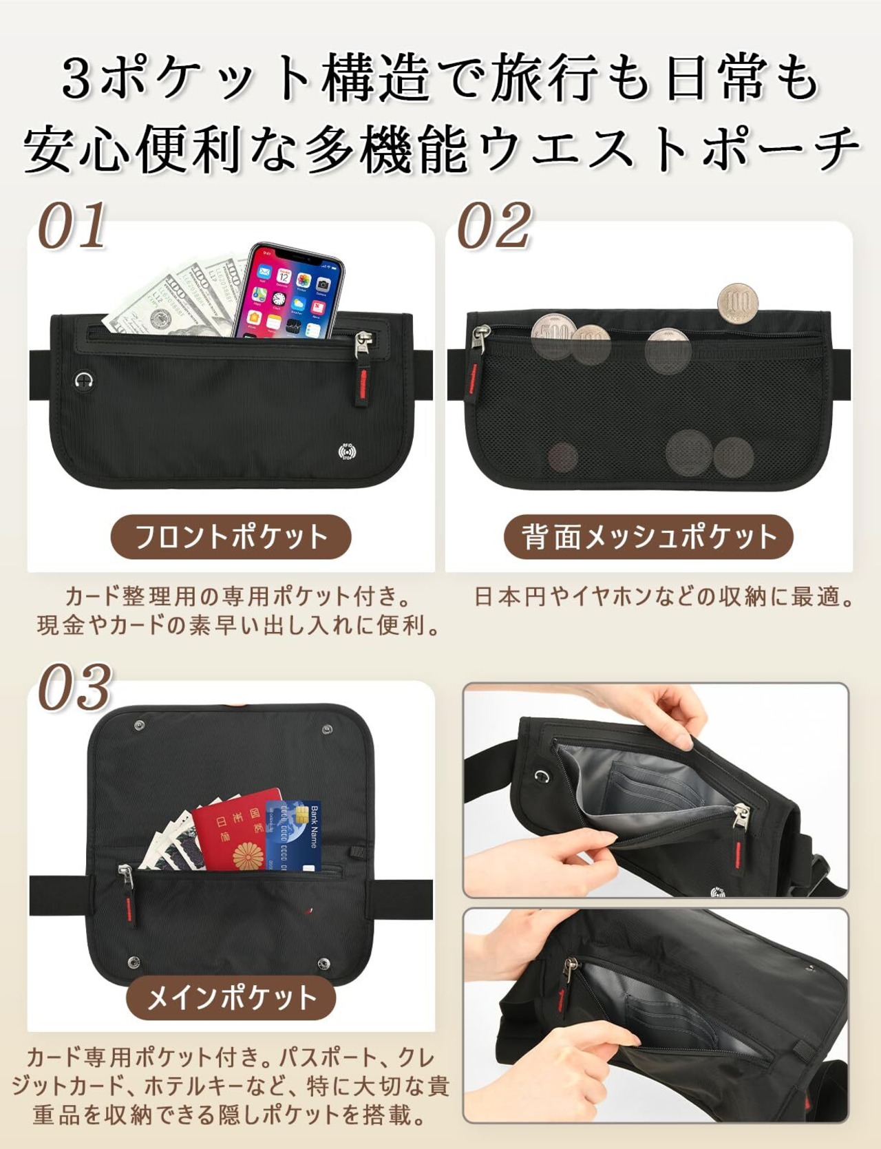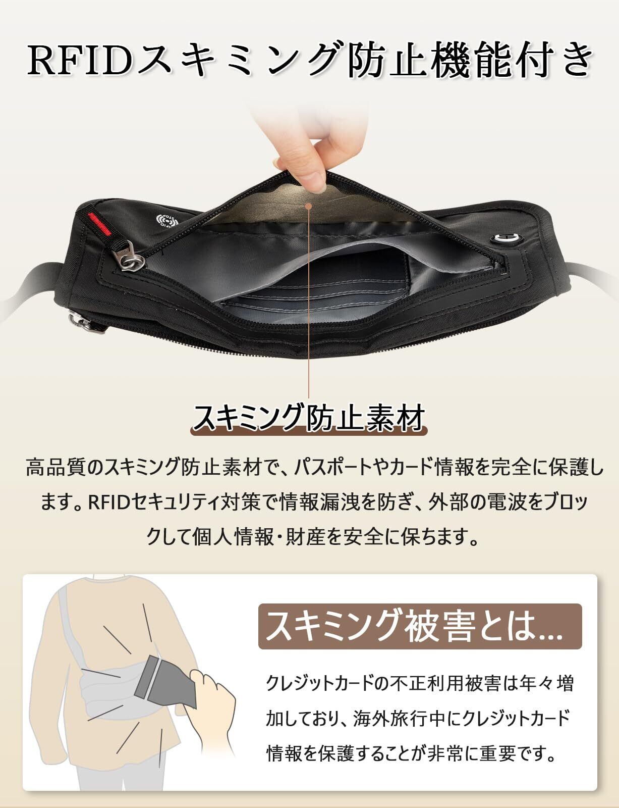 Mellbree セキュリティポーチ スキミング防止 防犯グッズ ウエストポーチ スリ対策 海外旅行用 貴重品ポーチ 薄型軽量 RFIDブロック 多機能収納 メンズ/レディース対応 防水仕様 旅行便利グッズ 防犯バッグ シークレットポーチ 日常/ランニング/海外旅行対応 (ブラック)