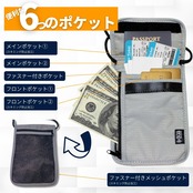 【安心のセキュリティ&収納力】高性能スキミング防止加工を施したナイロンファイバー素材で、個人情報を徹底ガード。6つのポケットで使い勝手抜群、パスポートや現金、カード類をしっかり収納。撥水加工の軽量生地(わずか55g)は、雨の日でも安心の防水仕様。0.5cmの超薄型デザインで、服の下に隠して持ち歩きやすく、旅行時のセキュリティ対策も万全です。長さ調節可能なショルダーストラップで、首掛けや斜め掛けも自由自在。安心して旅行ができるようお手伝いします。