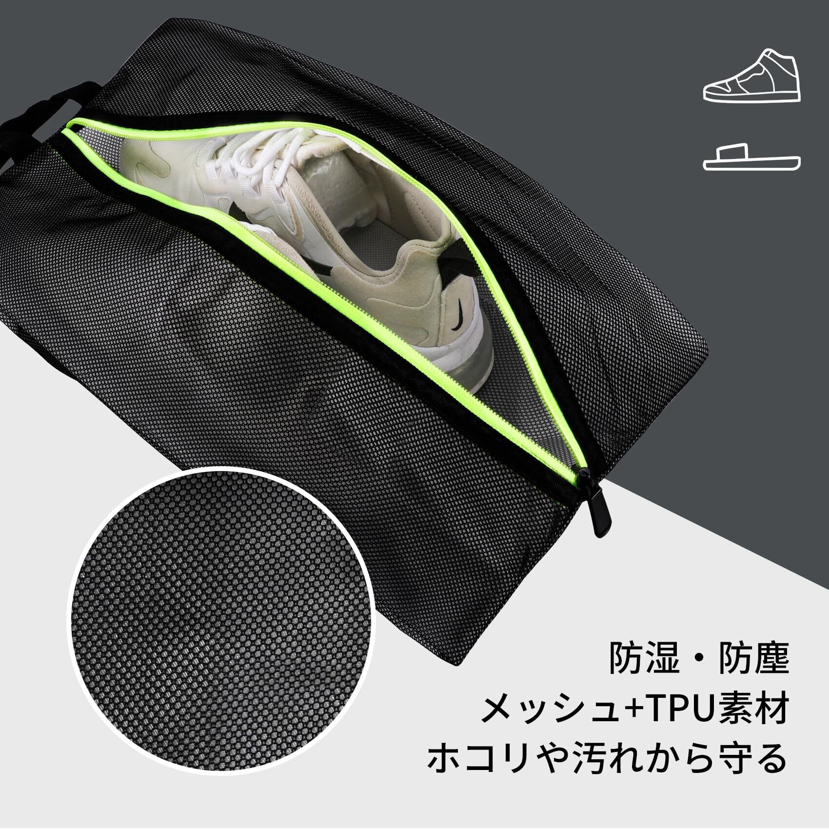 サイズ:シューズケースのサイズ約24x39x9cm。30cmまでの靴もゆったり収納可能です。バスケシューズ、スニーカー、ゴルフシューズ、革靴などの一般的な靴の大きさに合わせるサイズ、出し入れしやすいです。使わない時は、くるくる巻くだけでいつでもバッグに入れておけるサイズ。