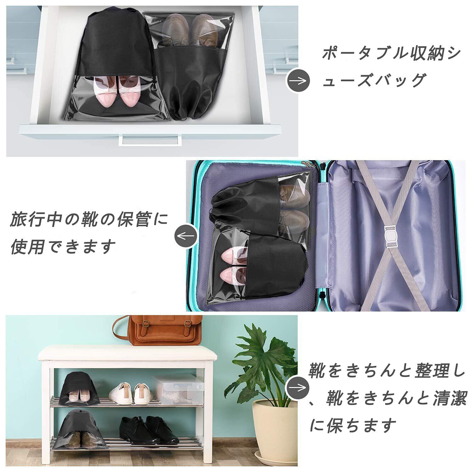 RICISUNG 巾着袋 巾着ポーチ 不織布防塵ポーチ 靴袋 靴収納 防水袋 衣類収納 防水 旅行用 透明なウィンドウスロット付き 八個セット