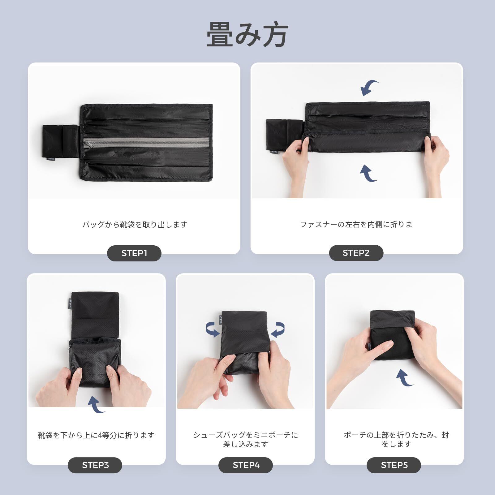 1. 超軽量&持ち運びに便利:このシューズケースは10.5x11.5x2.5cmの小さいポーチに折りたたむことができ、僅かな72グラムなので持ち運びが簡単です。