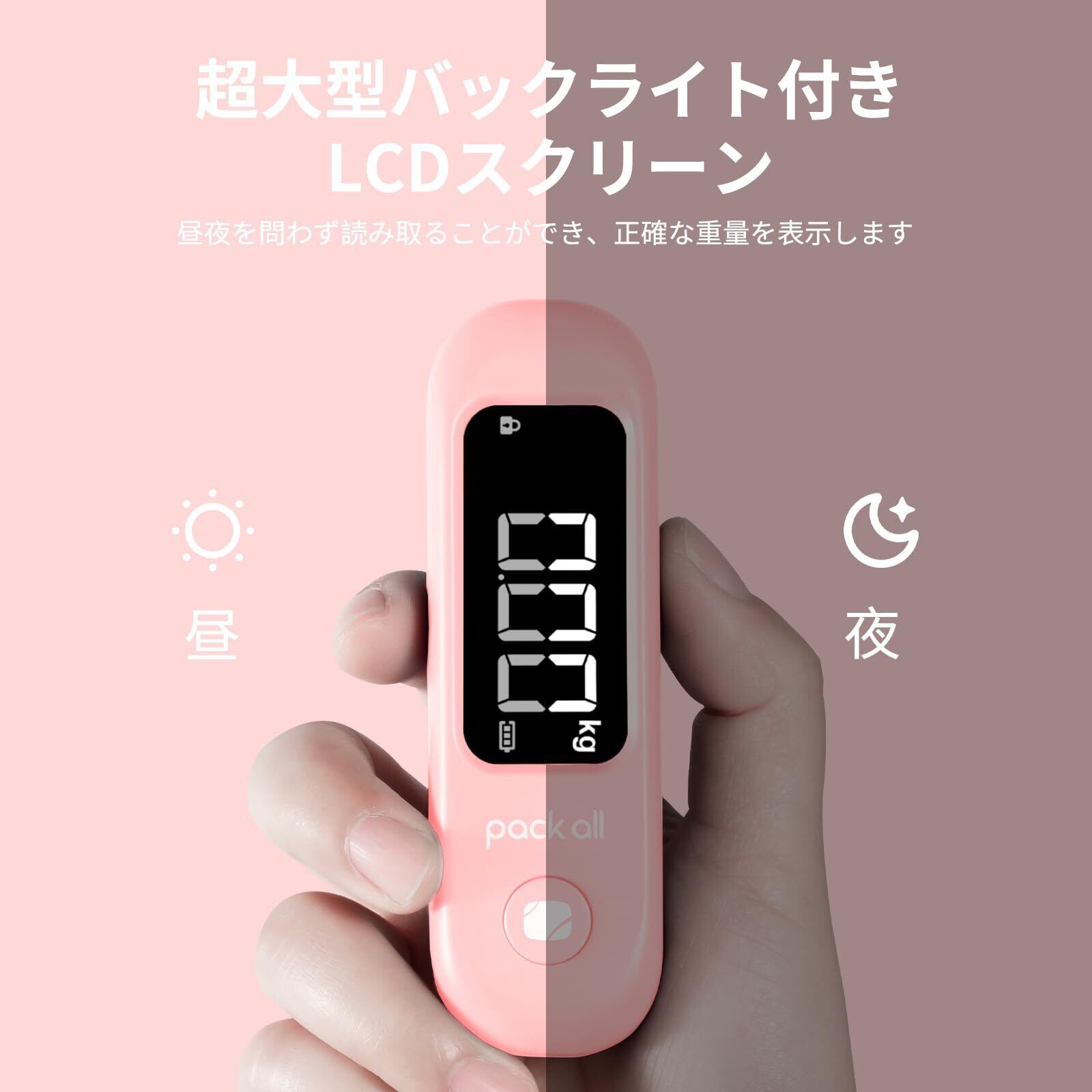 pack all 荷物 旅行はかり 最大50kgまで量れる LCC用 携帯式デジタルスケール 吊り下げ式 LCDスクリーン バックライト付き 風袋引き機能付 バッテリー付き 便利 軽量(ピンク)