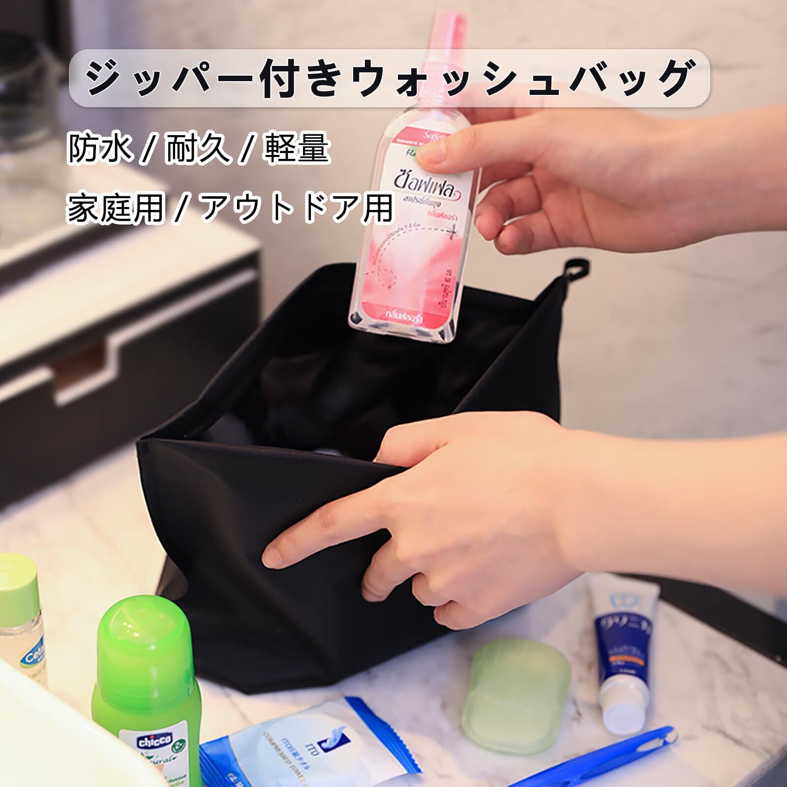 【幅広く活躍】程よいサイズ感で、洗面用具や化粧品、洗剤ボトルなどをきちんと収納できます。家庭用はも ちろん、ジム、温泉、キャンプなど様々なシーンで活躍します