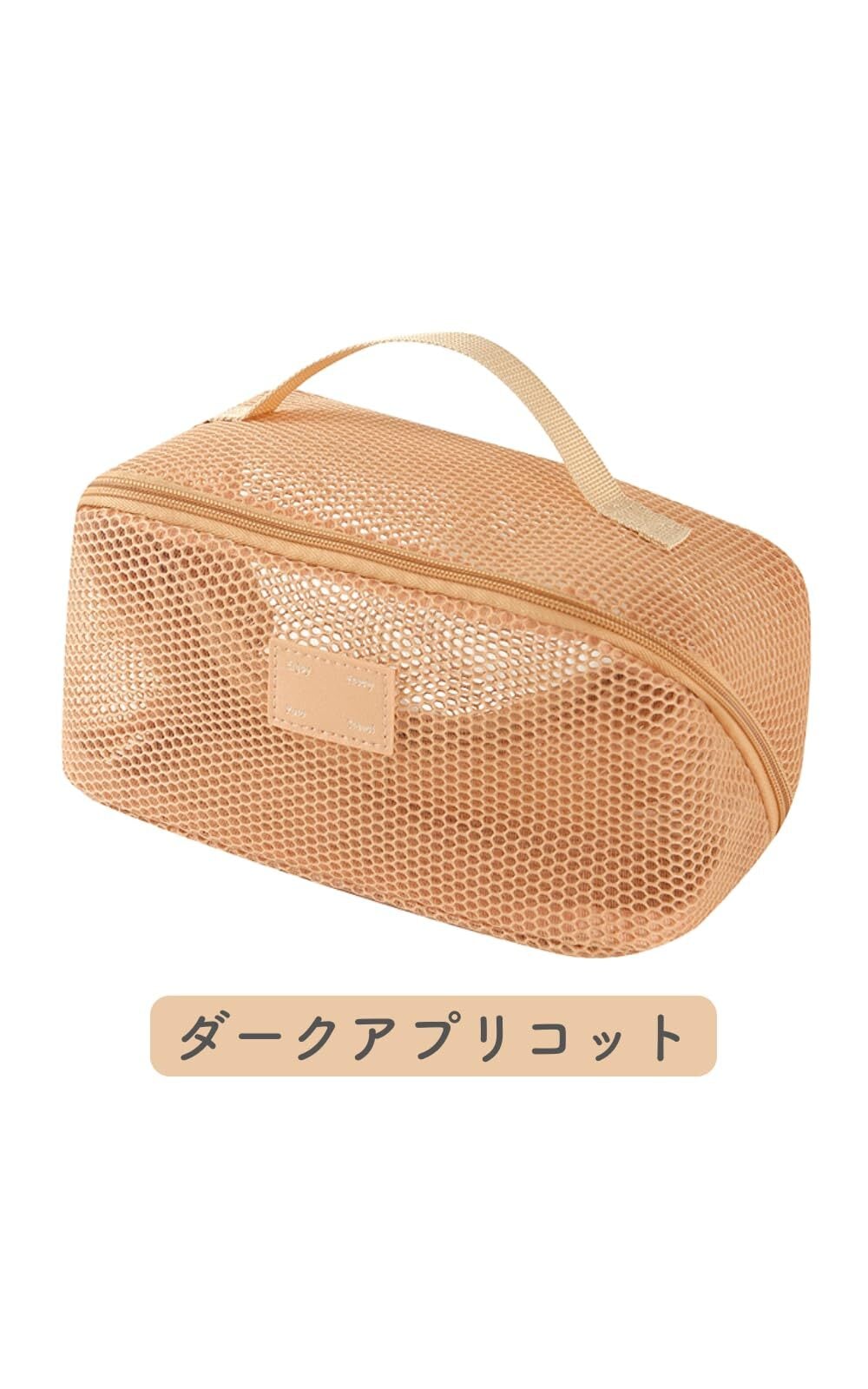 【人気商品】yacanova メッシュポーチ 化粧ポーチ 大きめ 大容量 ガバッと開く コスメ トラベル スパポーチ 軽量 (ダークアプリコット)
