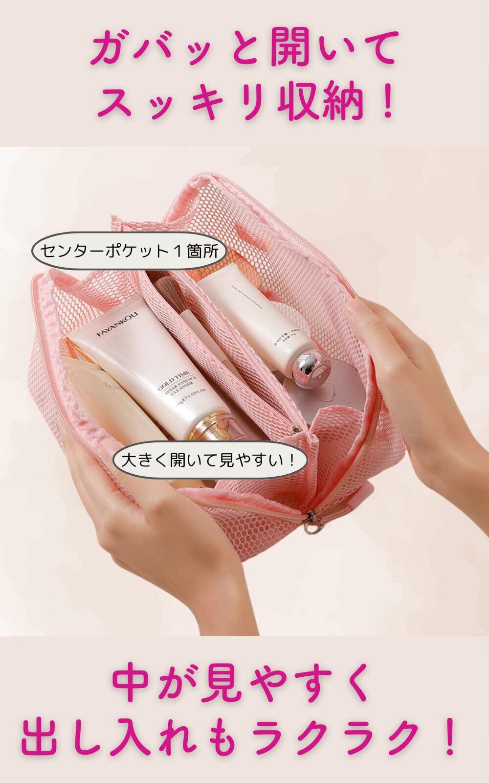 yacanova メッシュポーチ 化粧ポーチ 大きめ 大容量 ガバッと開く コスメ トラベル スパポーチ 軽量 (ダークアプリコット)