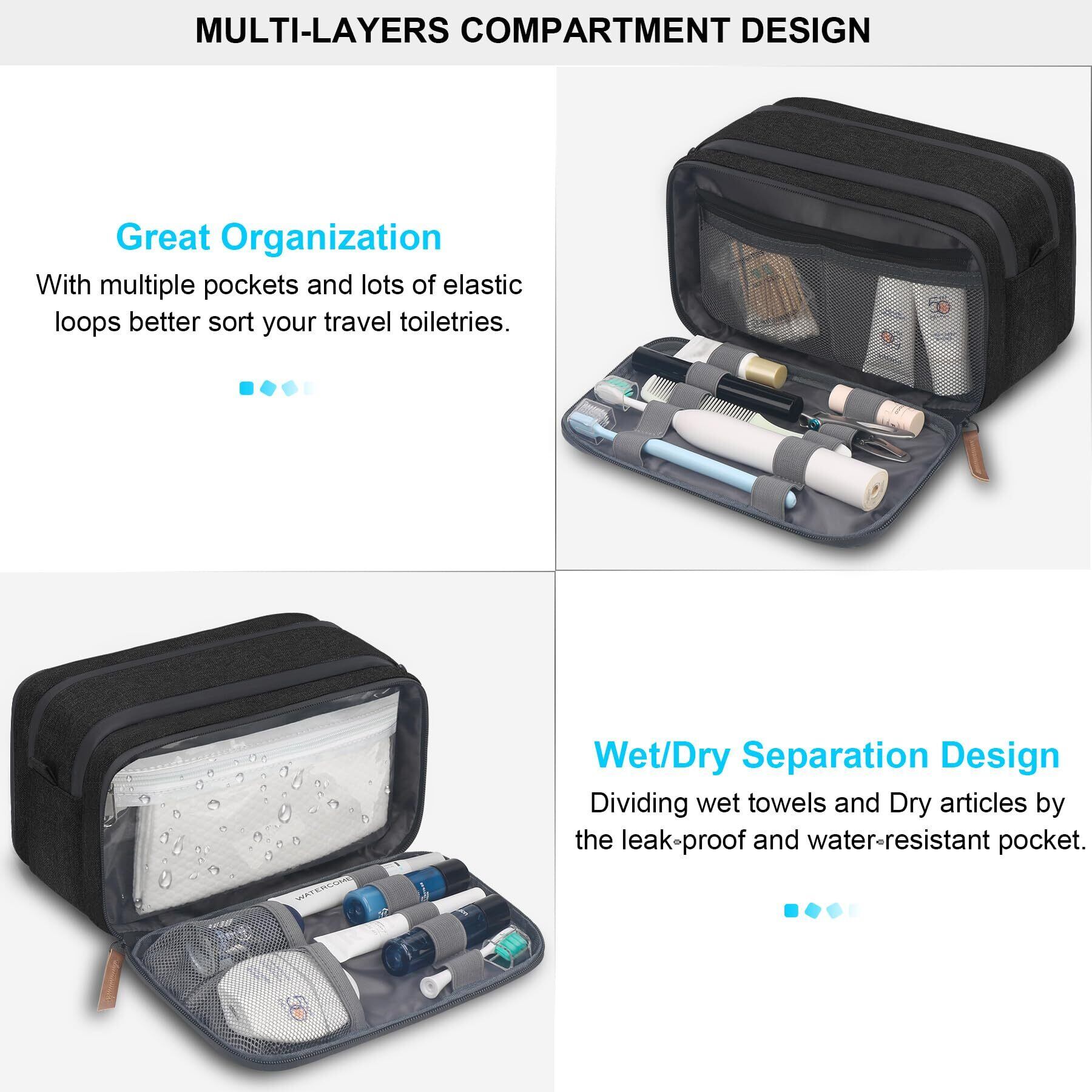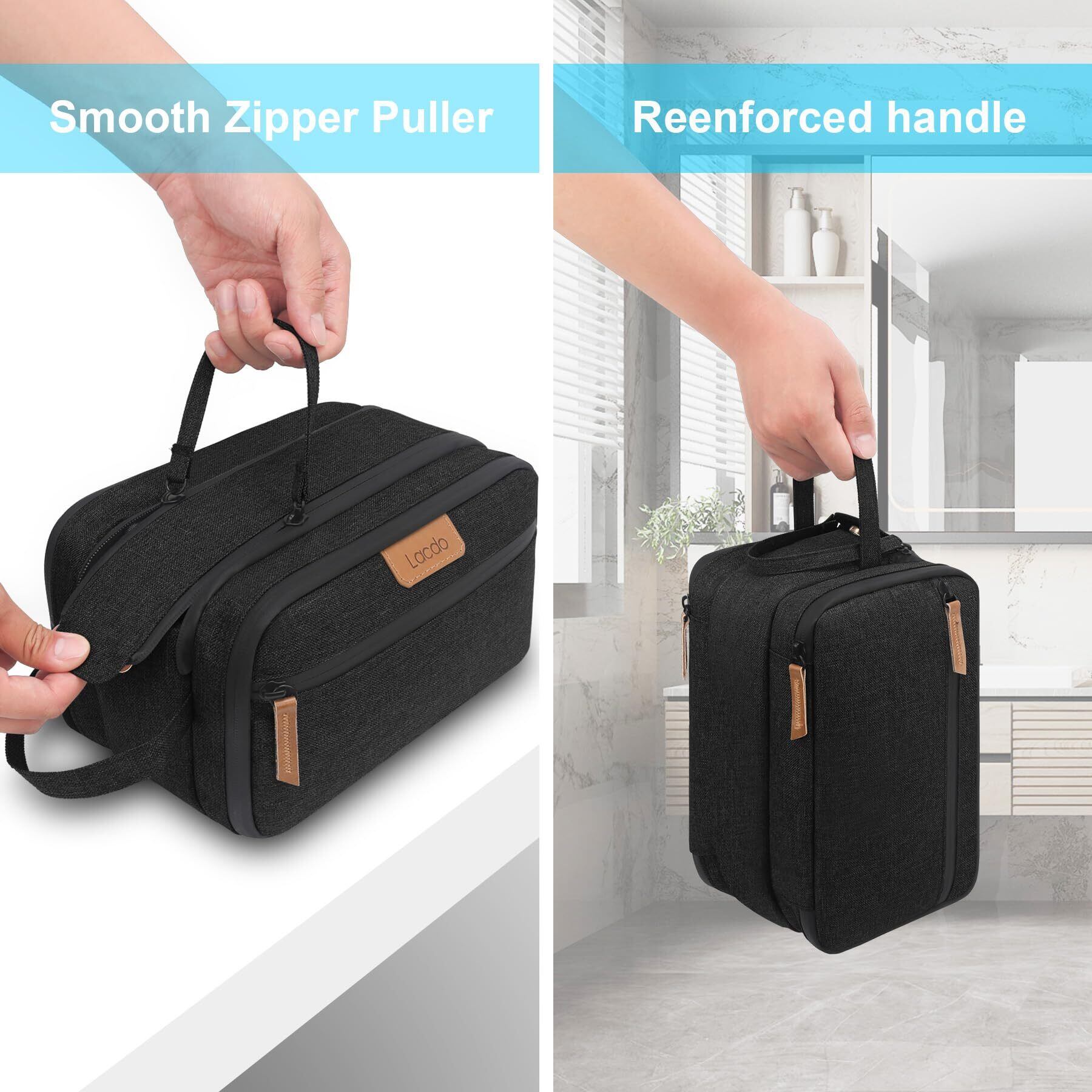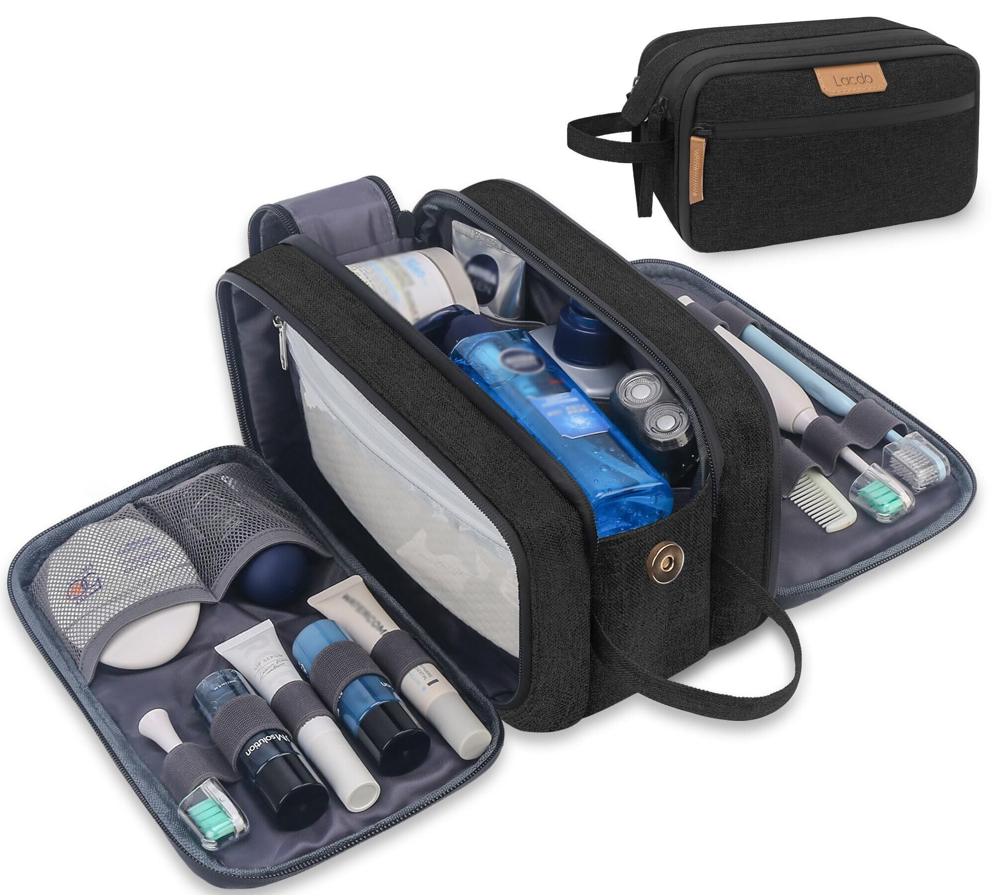 Lacdo 男性用トイレタリーバッグ、トラベルトイレタリーオーガナイザーDoppキット耐水性大型シェービングバッグ、トイレタリーアクセサリー化粧品バッグ、ブラック