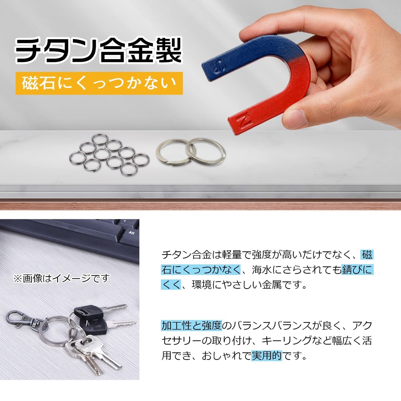 【幅広い用途】 キーホルダーやチェーン金具のつなぎ用途に適したチタン合金キーリングです。カラビナやフック、キーリングなど幅広く活用でき、おしゃれで実用的です。車や家の鍵を便利に整理して保管できます。アウトドア バックパッキング、サイクリング、キャンプ、ハイキング、お釣り、DIY工芸品などの日常使いにも適用します。本商品はアクセサリーなどを吊り下げるためのものなので、大量の荷物を運ぶのや登山用には使用できません。