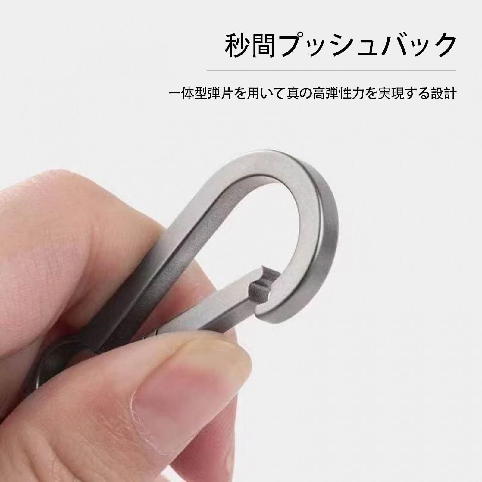 【チタンの一体構造】バネを使用せずチタンの高弾性を利用したつなぎ目のないオールチタン合金製のシームレスな一体構造鍵の着脱もワンタッチで楽々ですカギの紛失・脱落防止におすすめです。