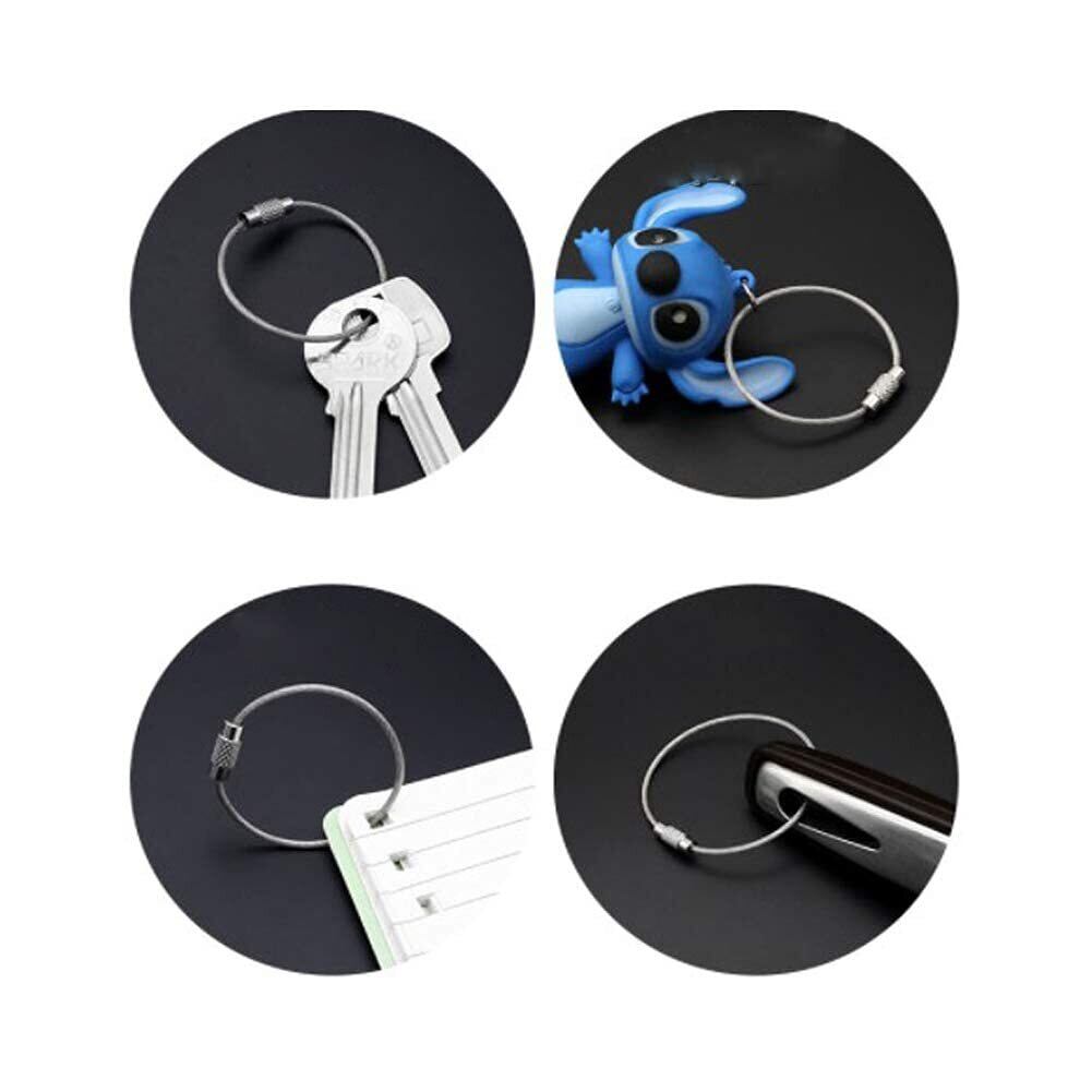 【幅広い使用法】このステンレスケーブルは鍵の整理だけではなく、吊りループ、ケーブルオーガナイザーとしても使え、また荷物タグ、USBフラッシュ、キッチン用具などを掛けたり、ベルトループに繋いで工具やエコバッグなどの小物をぶら下げたりするにもとても便利です。ご想像によってもっと広い使い道があり、色々な所に活用できます。