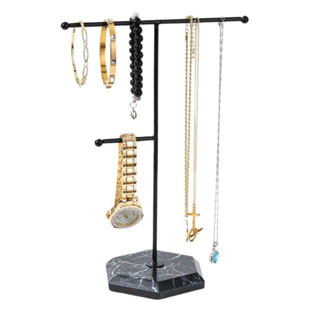【高級感と安定性を兼ね備えた大理石ベース】ベースは大理石のデザインで美しく、安定性があるためジュエリーの重さで倒れることはありません。