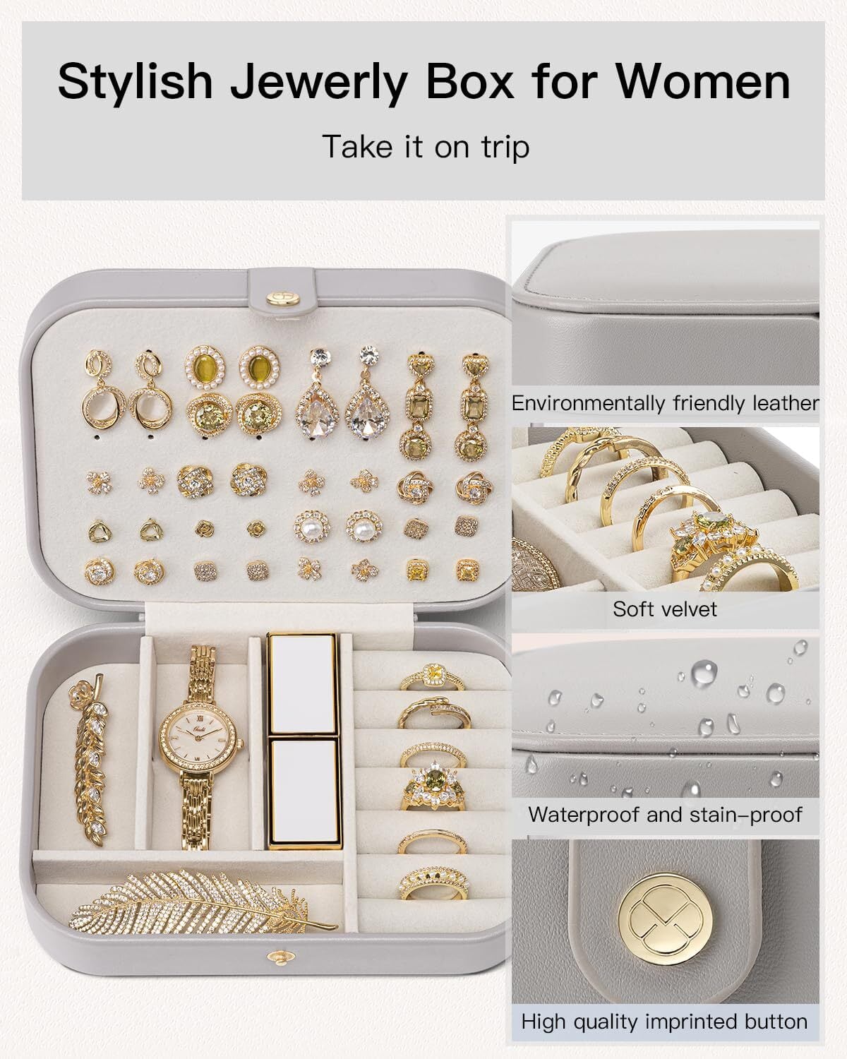 Vlando アクセサリーケース 携帯用 女性用トラベルジュエリーボックス 指輪、イヤリング、ネックレス用の2段ジュエリー収納ボックス グレー