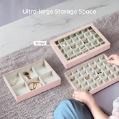 多機能:サイズは30㎝x 21㎝x4.6㎝(長x幅x高)です。35区画があるアクセサリートレーです。あなたの指輪、ブレスレット、真珠、ピアスなどのアクセサリーをアピールすることができ、芸術品のように家を飾ります。
