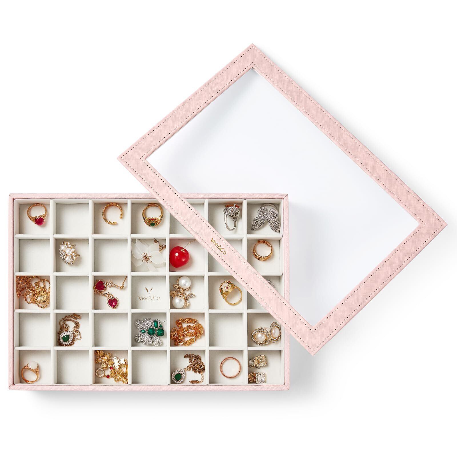 Vee&In.ジュエリーボックス アクセサリー収納 おしゃれなデザイン 多機能ピアスケース 蓋付きアクセサリーケース 小物整理に最適 女性用アクセサリー 収納良き助っ人(35 カバー付き, ピンク)