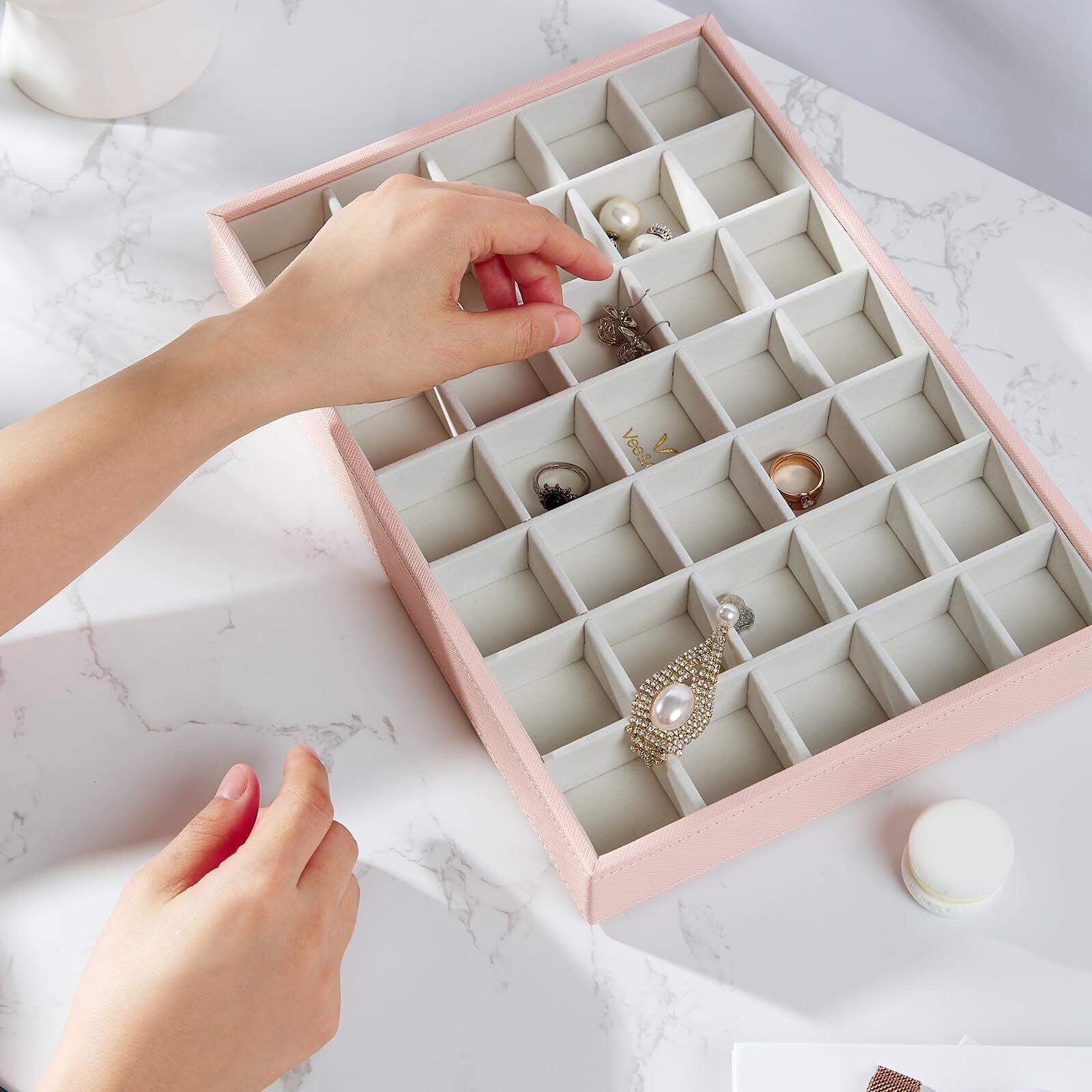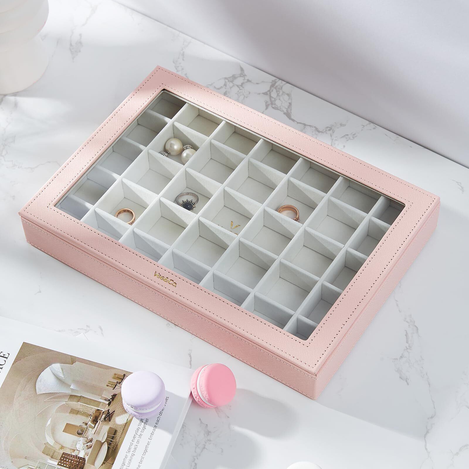 【特価商品】Vee&In.ジュエリーボックス アクセサリー収納 おしゃれなデザイン 多機能ピアスケース 蓋付きアクセサリーケース 小物整理に最適 女性用アクセサリー 収納良き助っ人(35 カバー付き, ピンク)