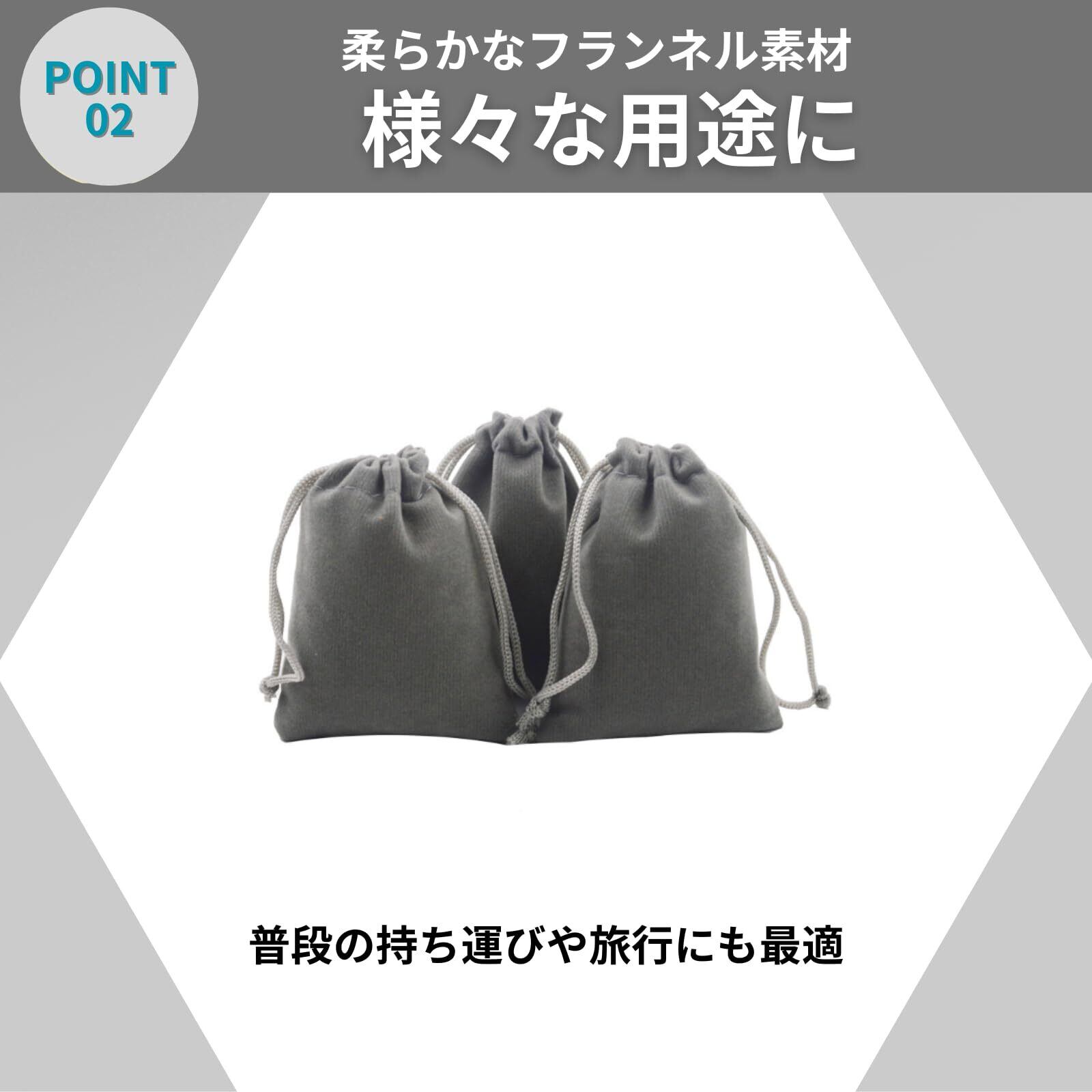 【様々な用途に活用できる】ふんわり柔らかなフランネル素材を使った手触りの良いミニサイズ収納袋です。小物ポーチとして便利で、普段の持ち運びや旅行にも最適。ギフトやプレゼントのラッピング、ジュエリーの保管にも幅広くお使いいただけます。
