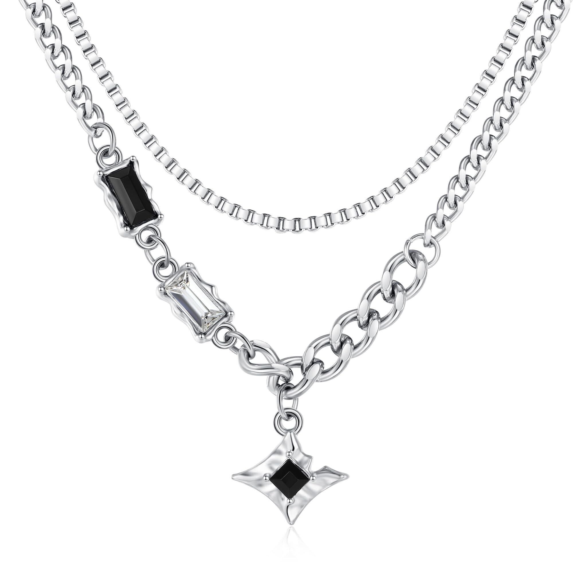【特価商品】「シルバーサンダー」ネックレス メンズ チタン鋼 合金 玻璃 四芒星 シルバー ブラック アクセサリー ジュエリー プレゼント 彼氏 父の日 誕生日 結婚日 人気 記念日 男女兼用 バレンタインデー ホワイトデー