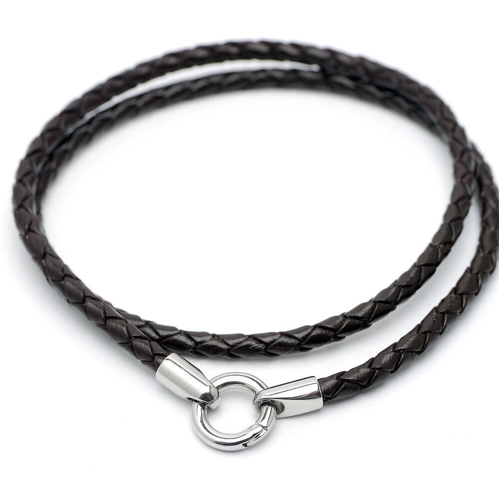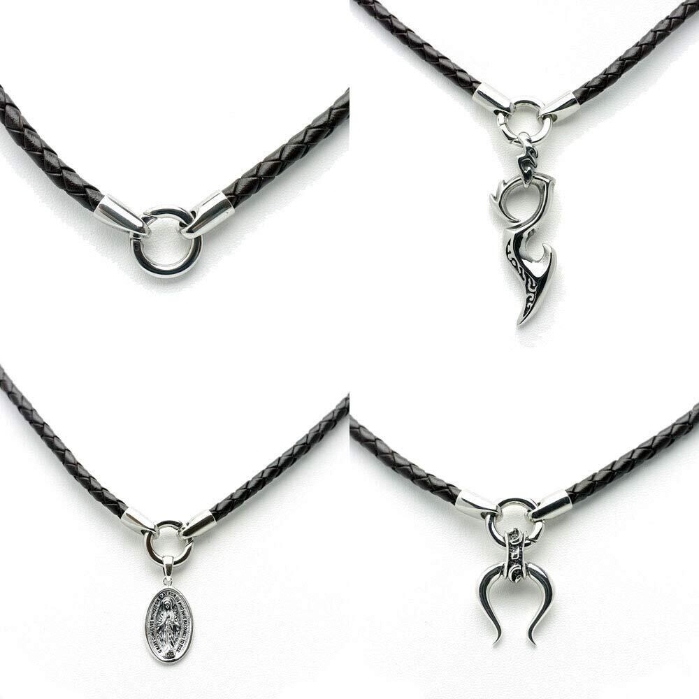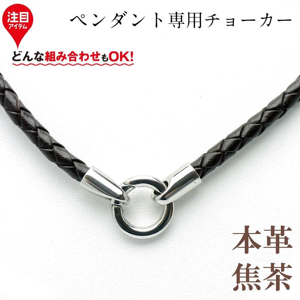 [シルバーワン] ペンダント専用レザー チョーカー [黒/焦げ茶 幅4mm](40cm45cm50cm60cm) ステンレス 編み込みネックレス メンズ