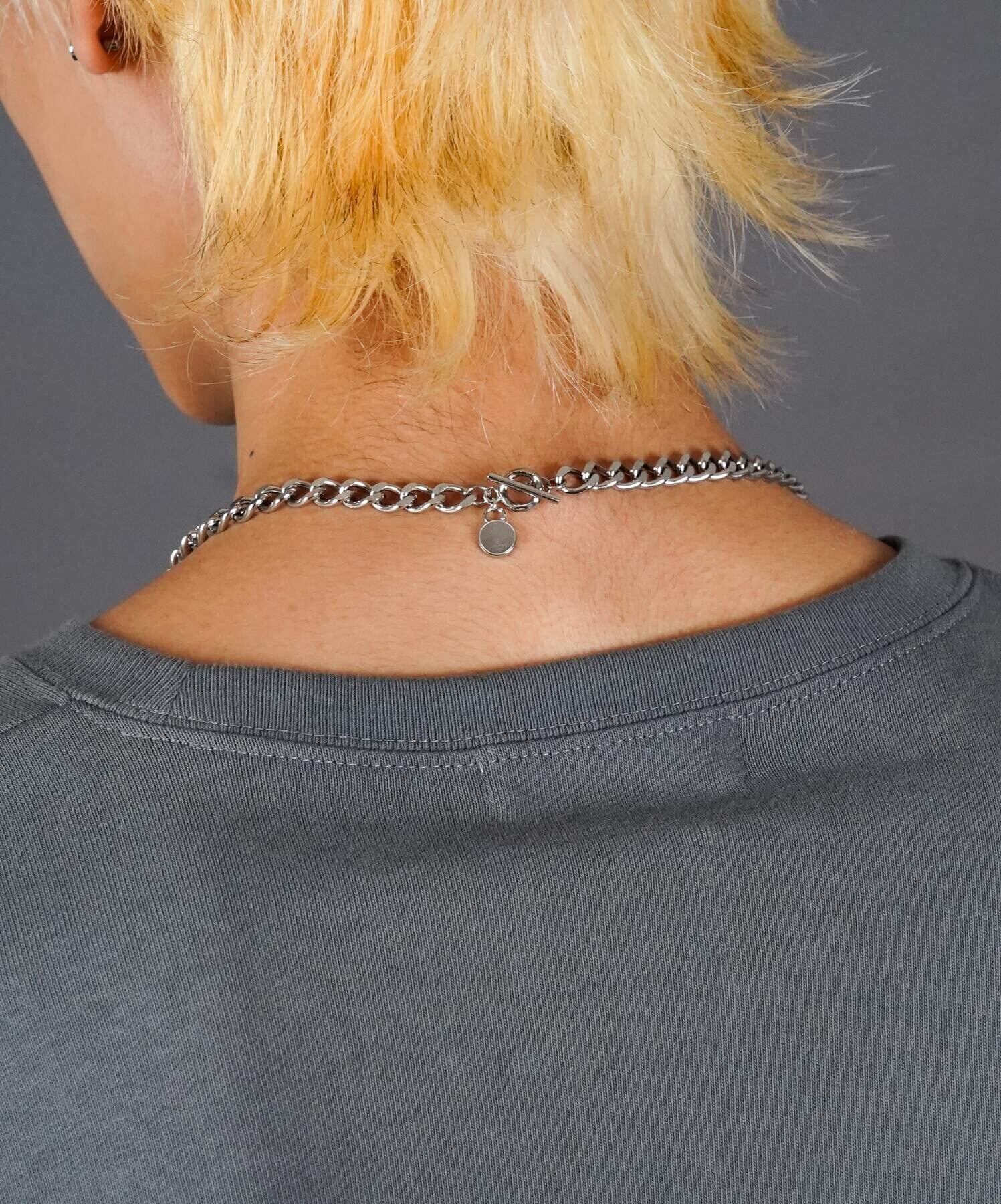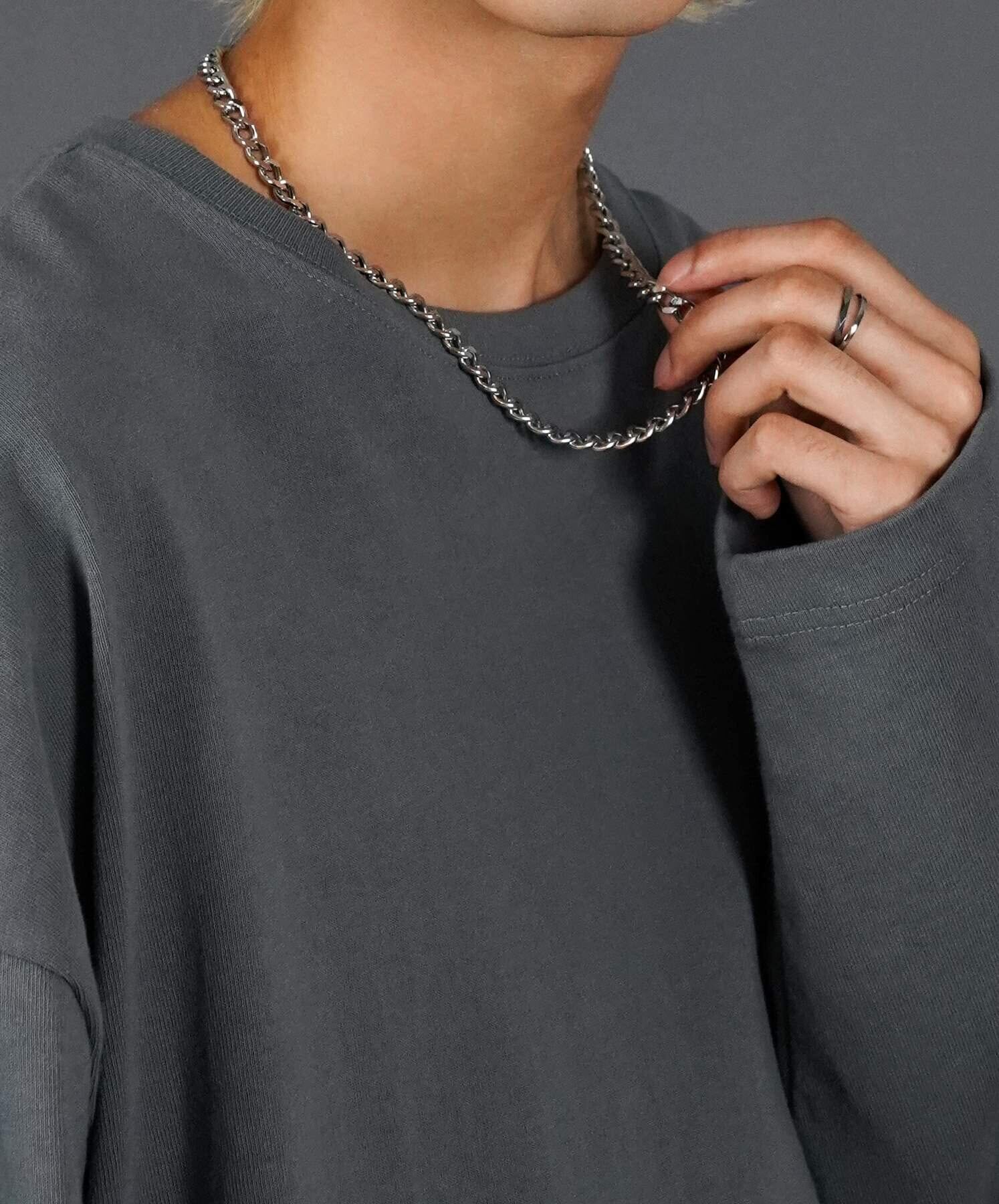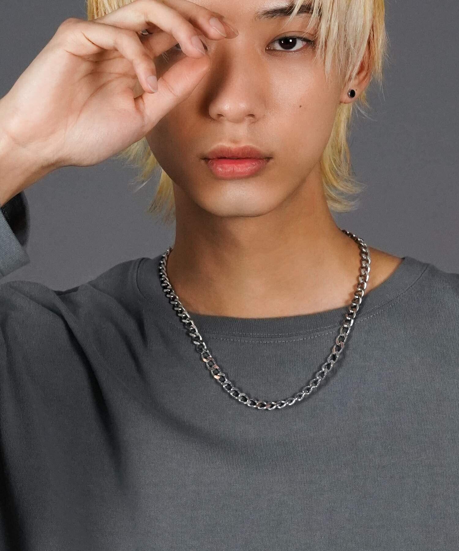 1点でコーディネートの主役になるワイドチェーンネックレス