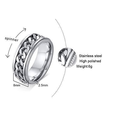 Rockyu ジュエリー 人気ブランド 指輪 メンズ ステンレス 金属アレルギー対応 シルバー チェイン 回転 回るリング 22号 セレブ 結婚式 ギフト