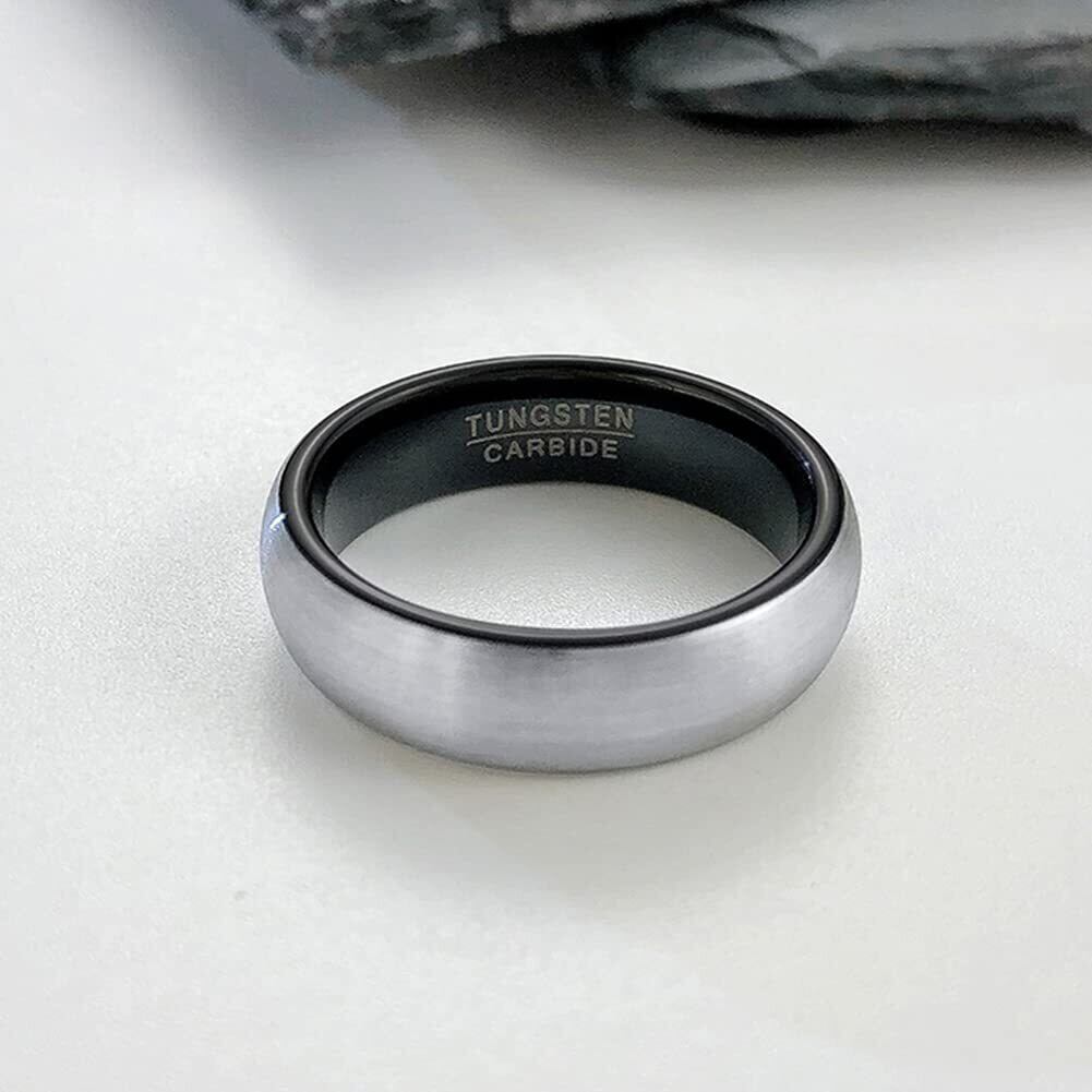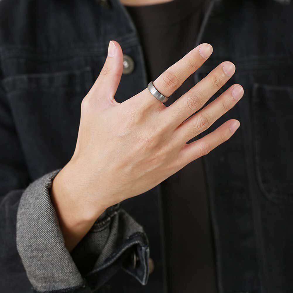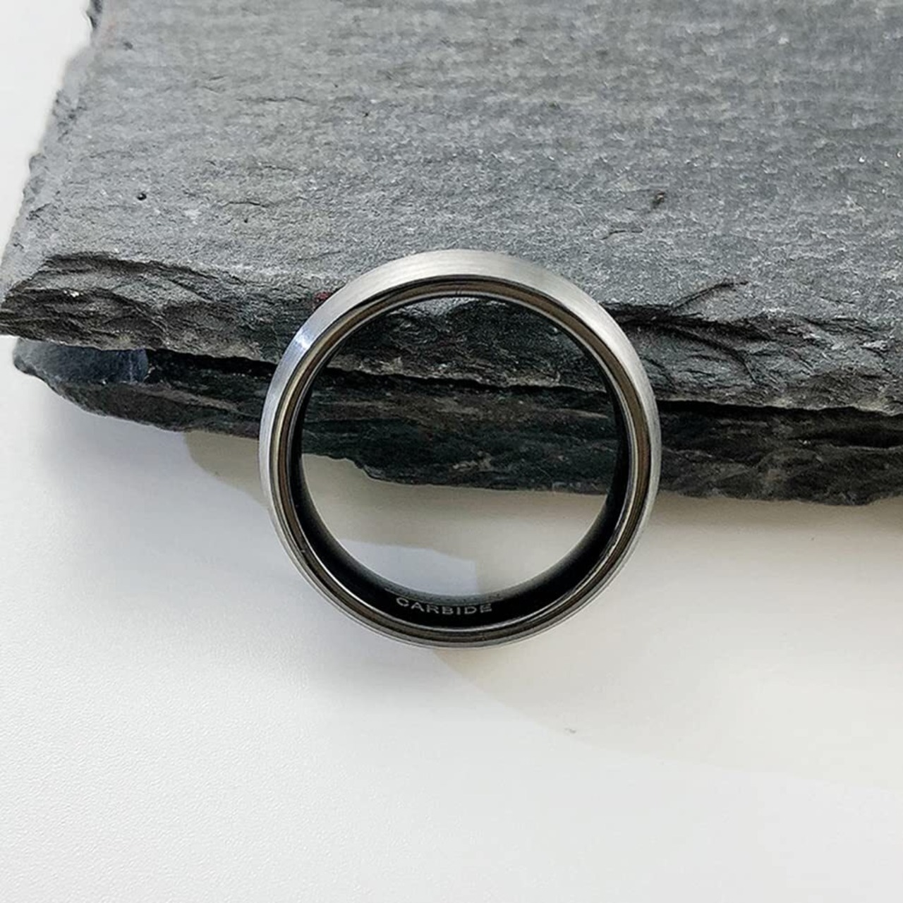 【Rockyu タングステンリング メンズ シルバー】 表面は艶消しのマット仕上げで、控えめな光沢が洗練された印象を与えます。幅は8mmで存在感抜群、結婚指輪やペアリングとしても最適です。
