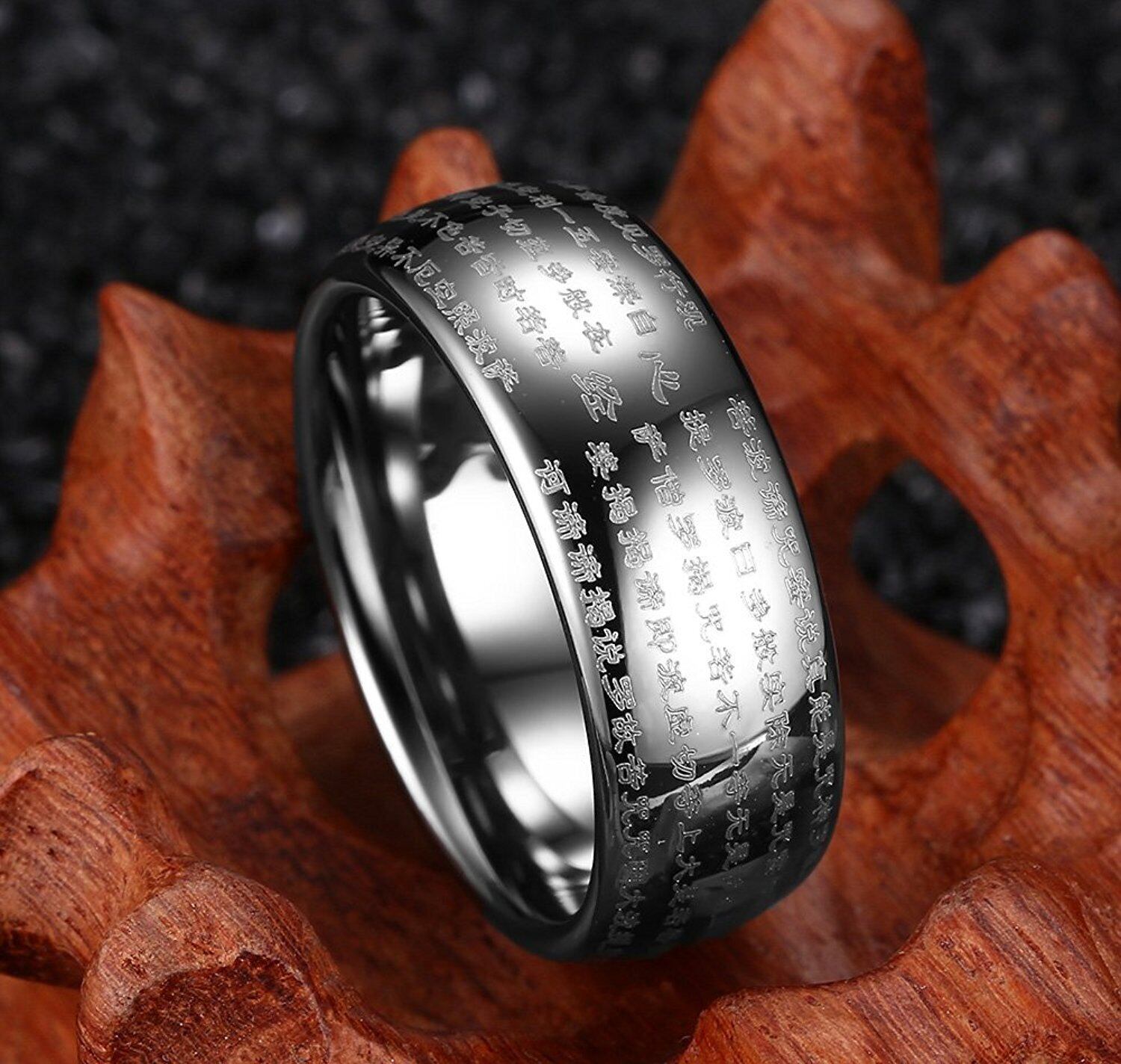 [Rockyu] タングステン リング メンズ 指輪 刻印 般若心経 仏経 指輪 お守り 経文 タングステン重い