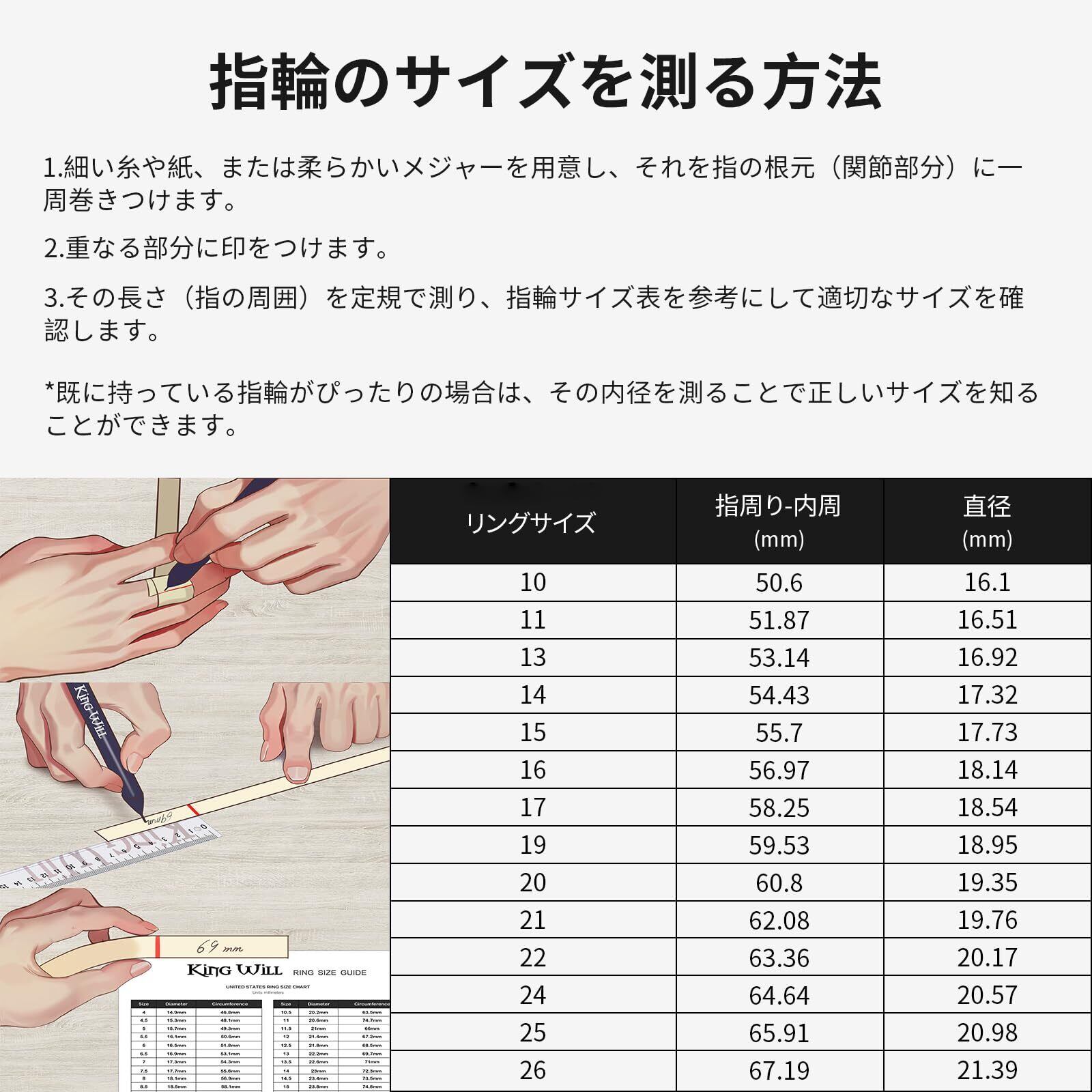 King Willはその信頼を大切にし、すべてのリングが良好な状態を維持できるよう努めています。そのため、180日間のを提供しています。ただし、このは製品自体に起因する不具合にのみ適用され、購入者の使用による損傷は対象外となります。