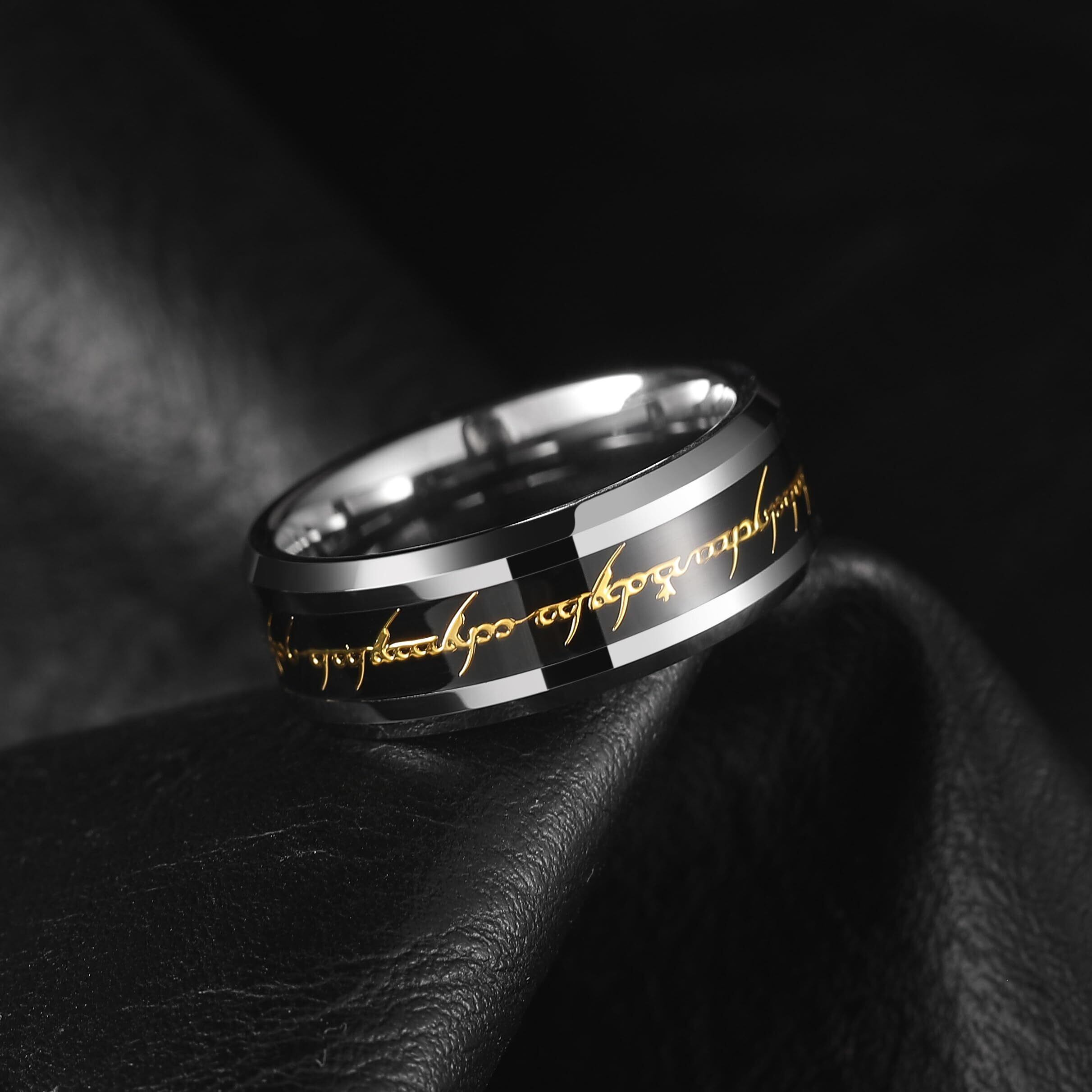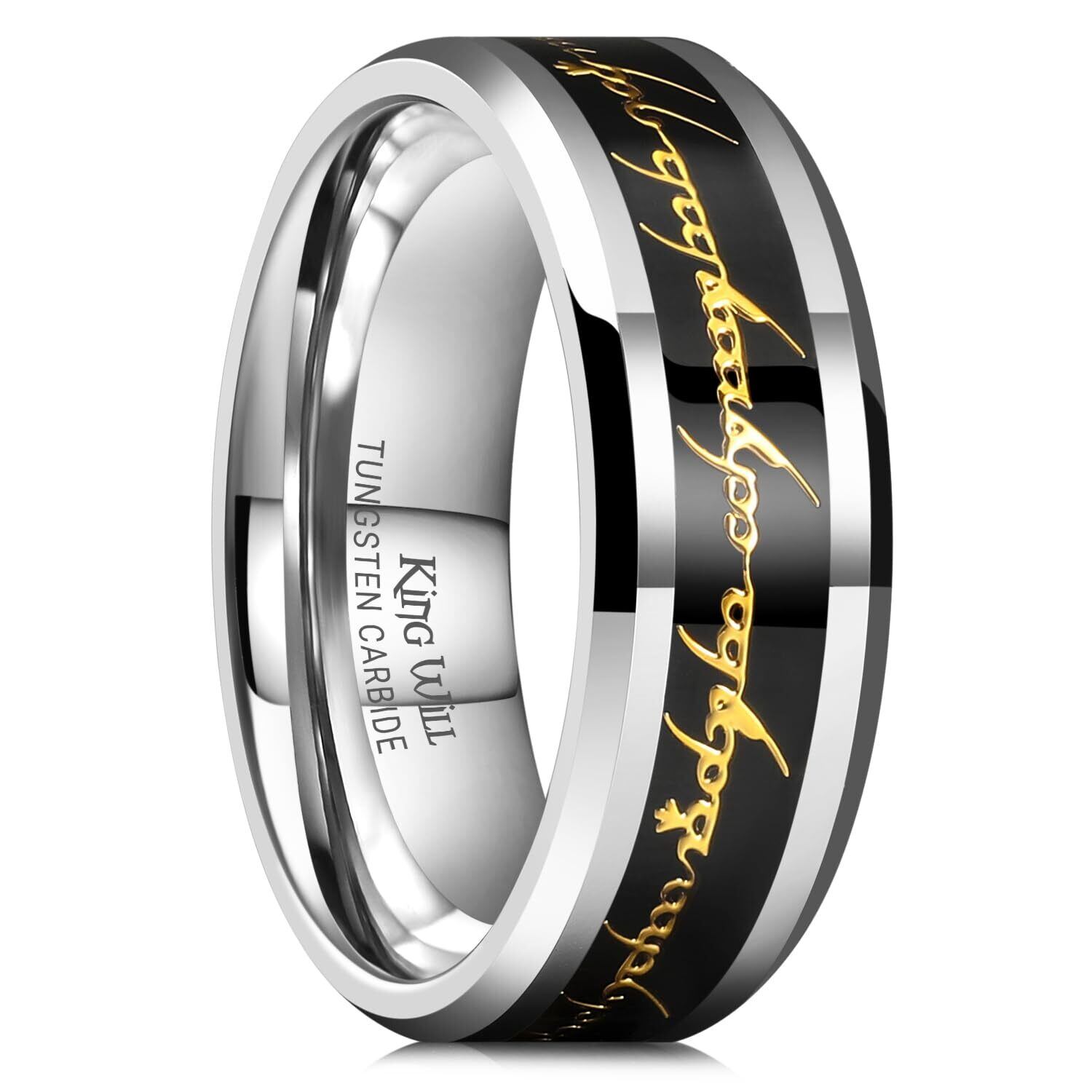 [King Will] タングステン指輪 8mm メンズ ガンメタル ゴールド 火文字入り 鏡面ベベル加工 21