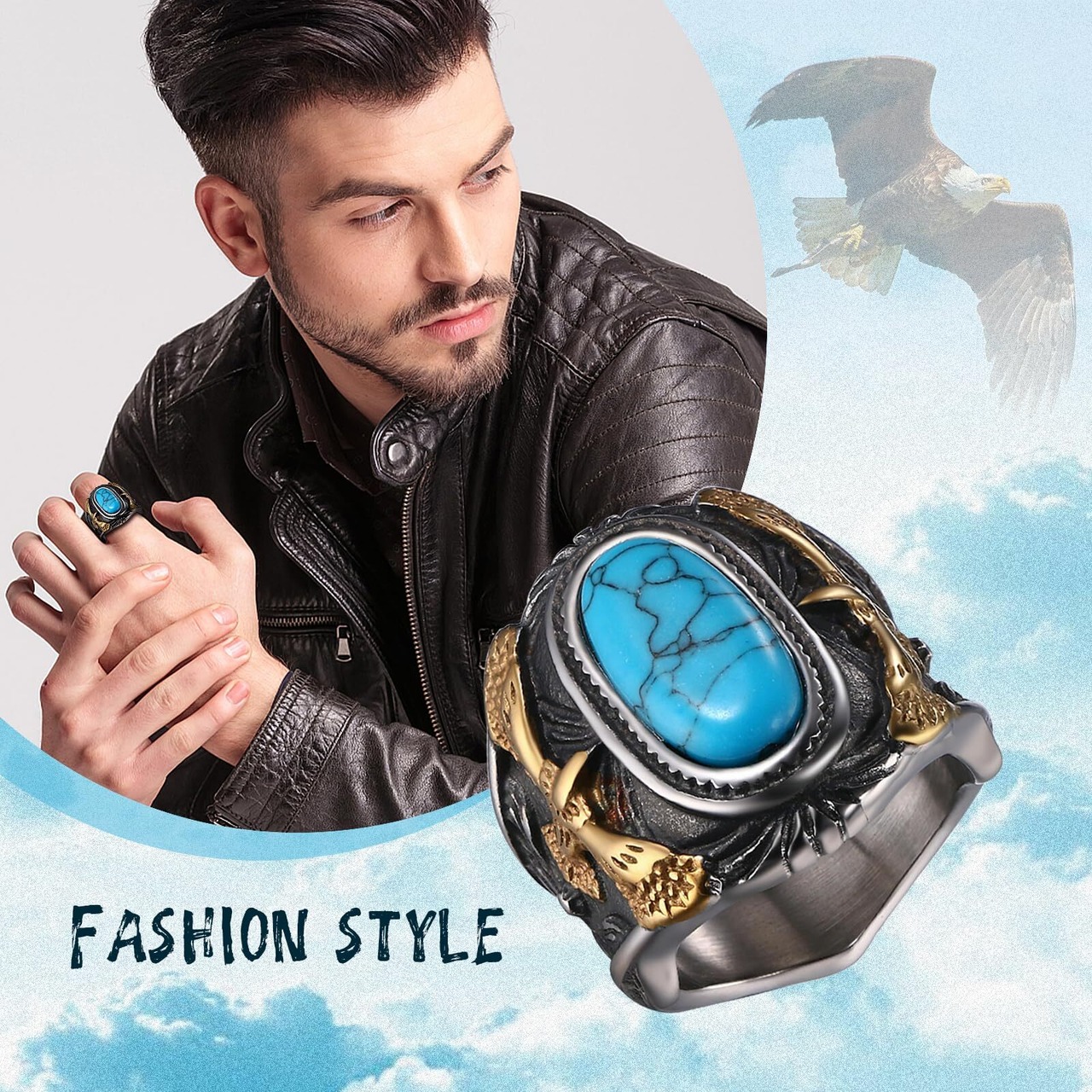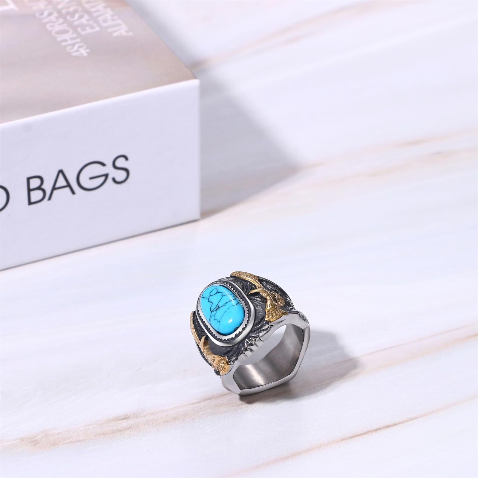 [JEWELRYWE] ターコイズ リング ステンレス 指輪 メンズ: アンティーク 印章 海軍 ワシ レトロ リング おしゃれ カジュアル ビジネス ゴシック ライダー リング - 誕生日 クリスマス バレンタインデー 父の日 プレゼント