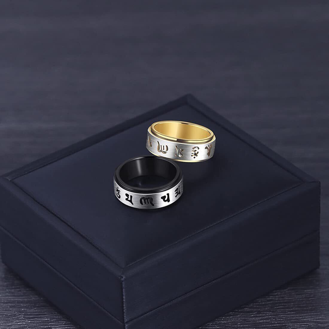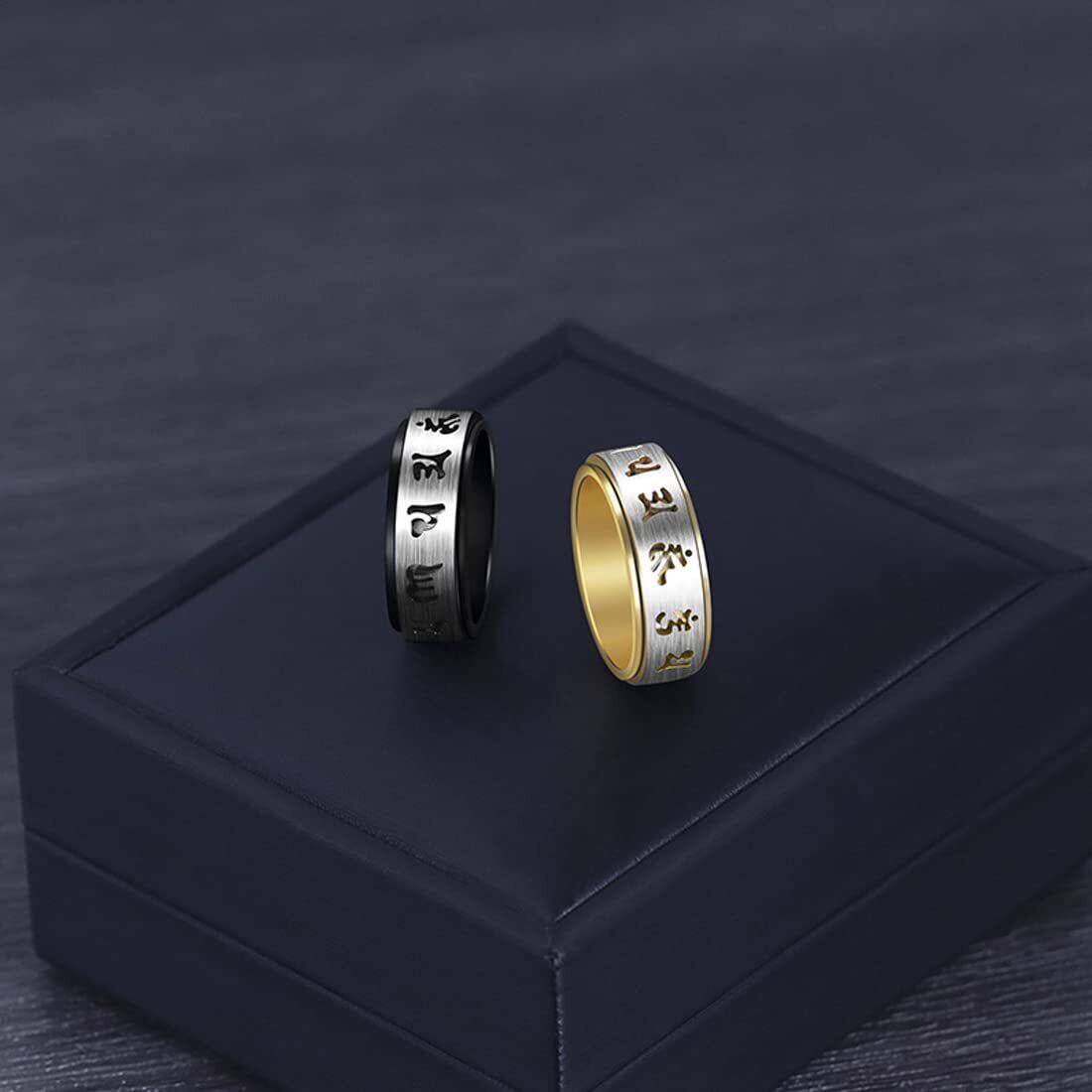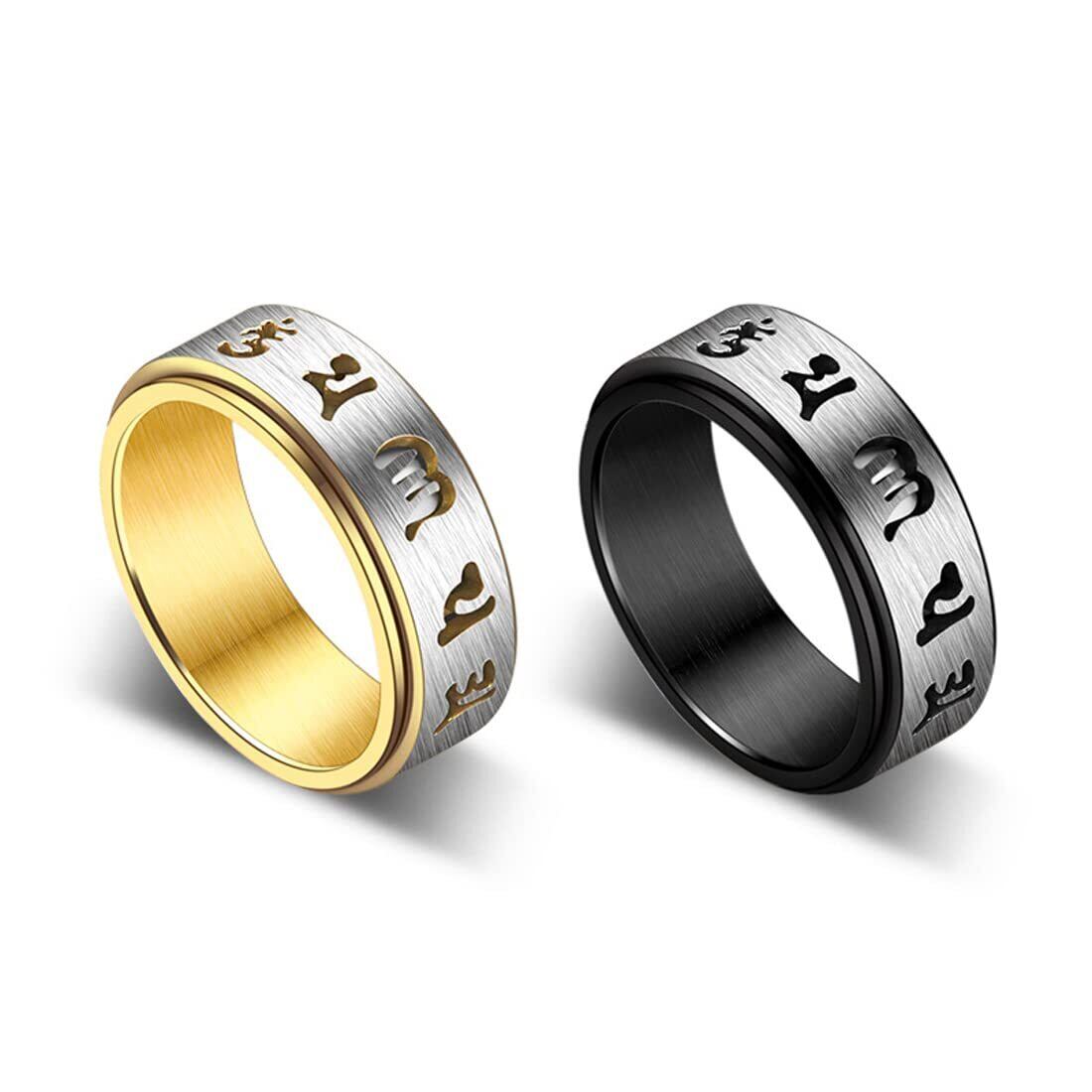 [Rockyu] ブランド ジュエリー 人気 リングメンズ ブラック シルバー ステンレス 六字真言 透かし ハワイアンジュエリー