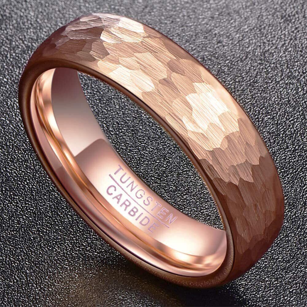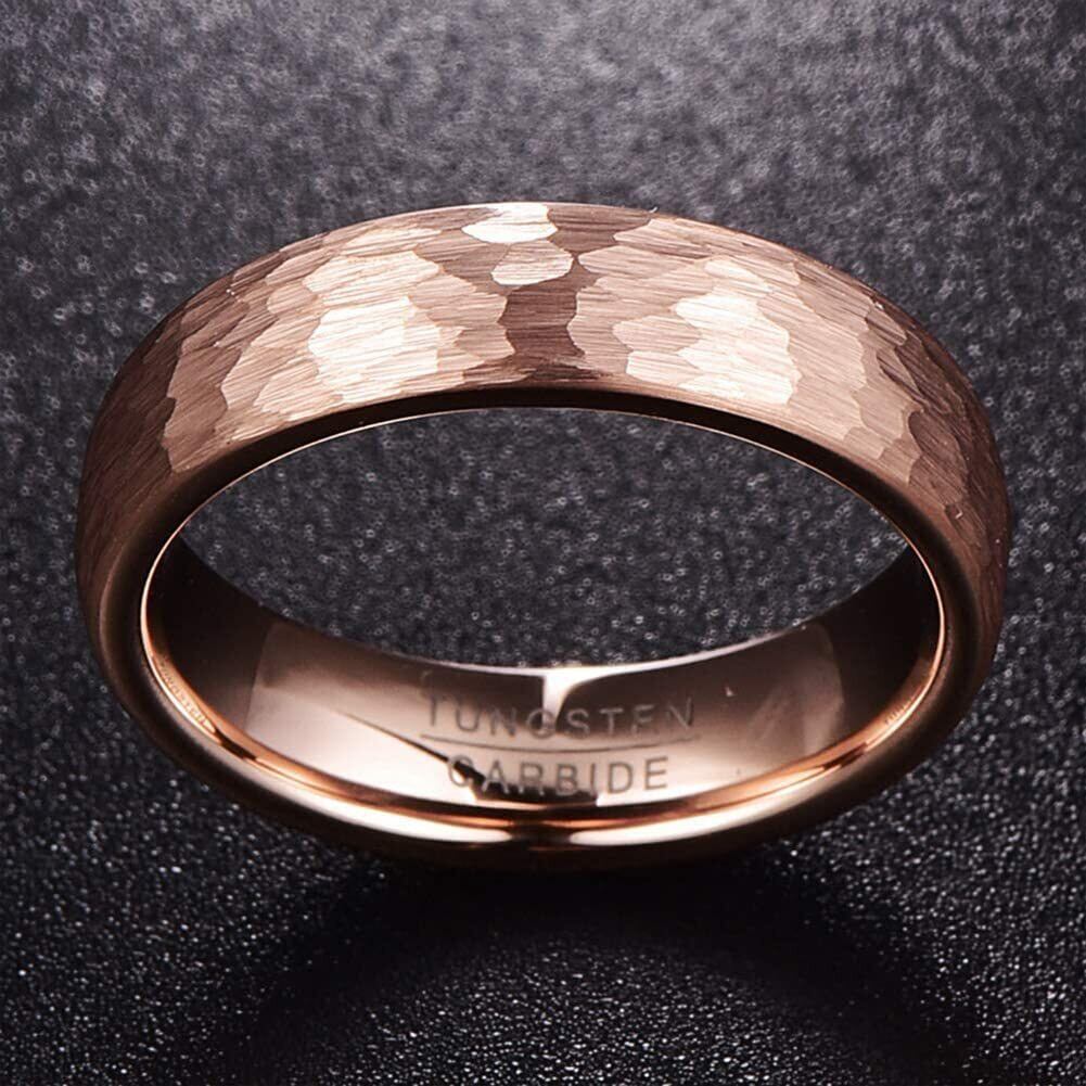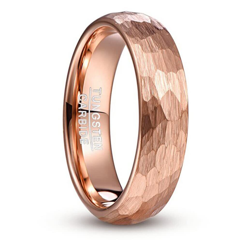 [Rockyu] タングステン 指輪 メンズ ブランド おしゃれ リング ゴールド ブラック 4mm 6mm 8mm 甲丸指輪 鎚目打ち指輪 ピンクゴールド 快適フィット 研磨ステップエッジ ファッションアクセサリー