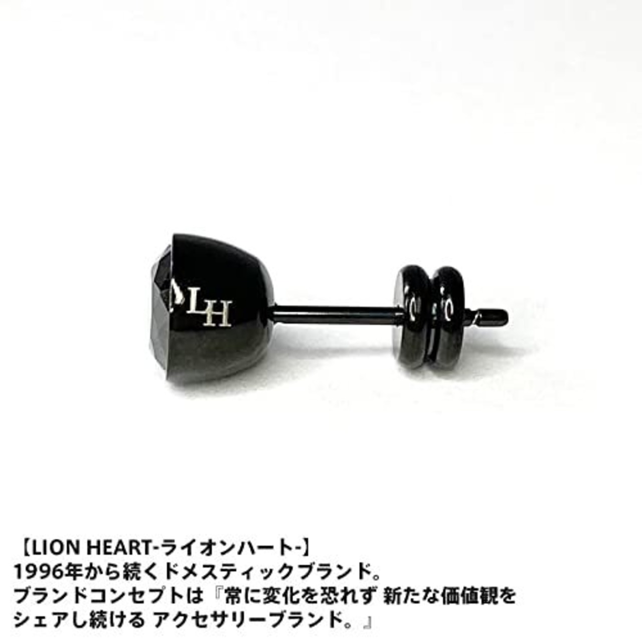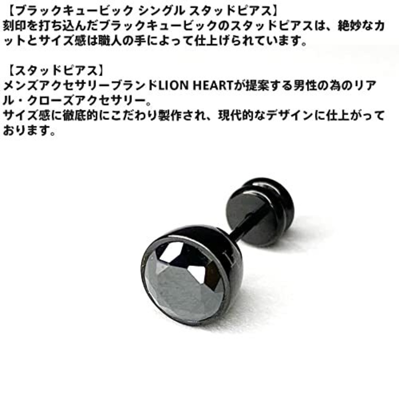 ライオンハート ラッピング済 ブラックキュービックジルコニア シングル スタッドピアス ブラック 黒 片耳用 1点売り 別注ポーチ付き メンズ ブランド LION HEART