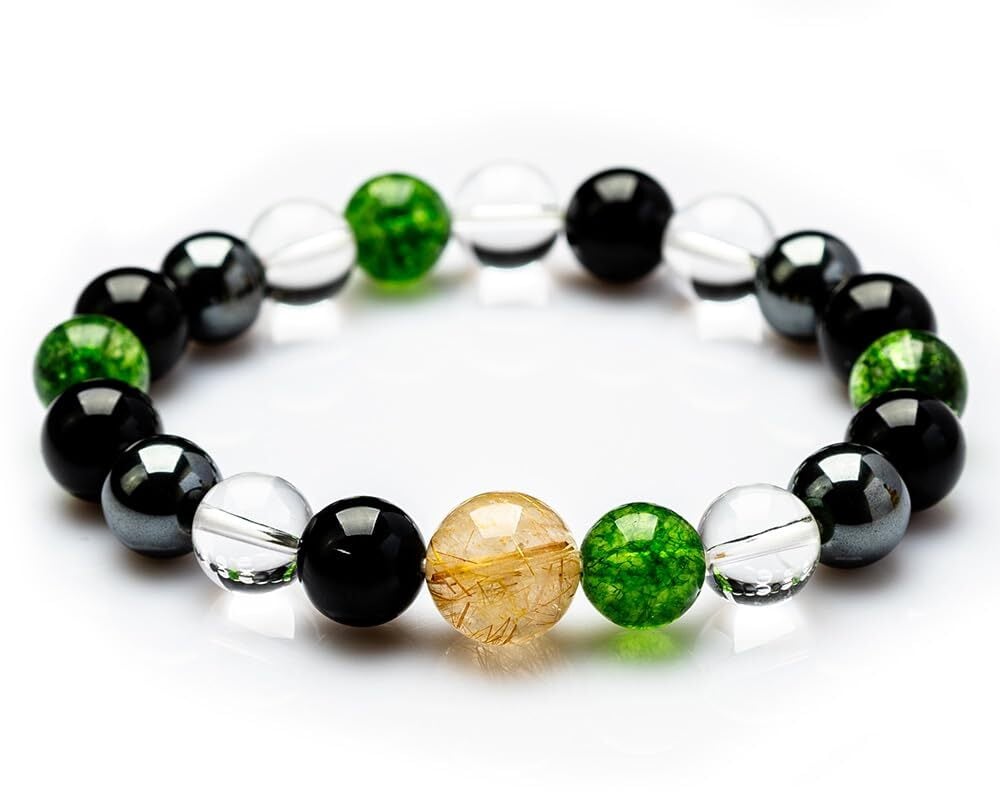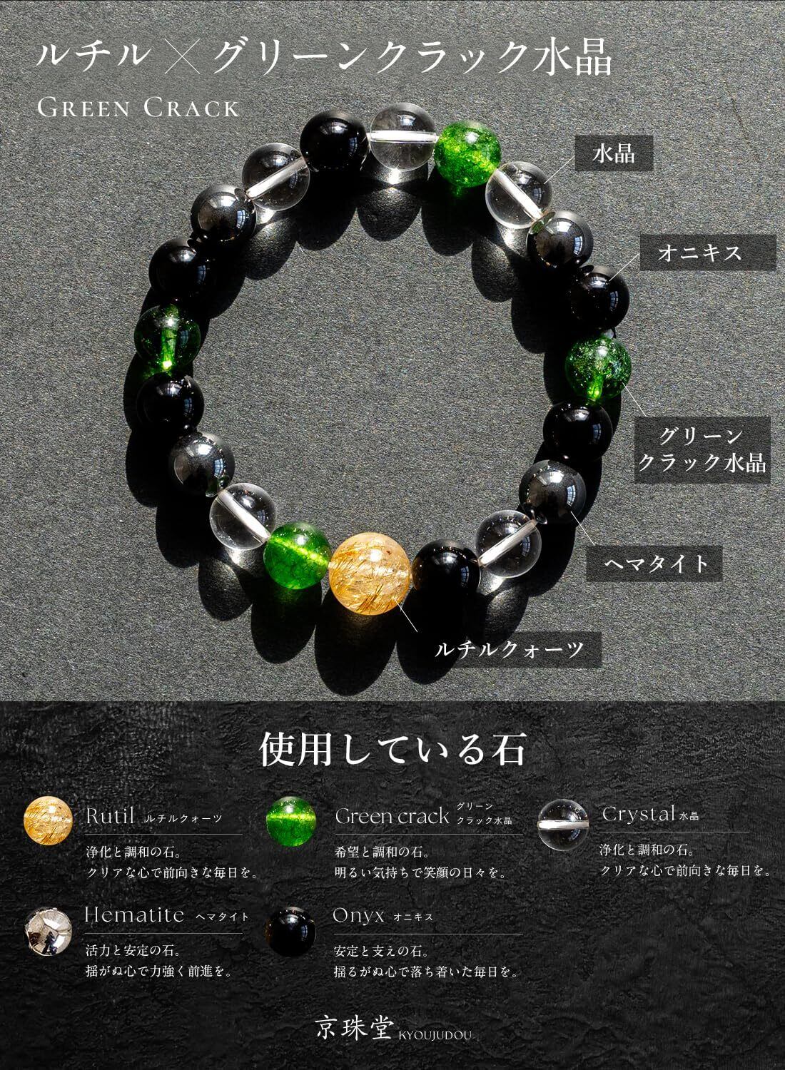 [京珠堂] メンズ ブレスレット ルチルクォーツ オニキス ヘマタイト パワーストーン カラークラック水晶 ルチル