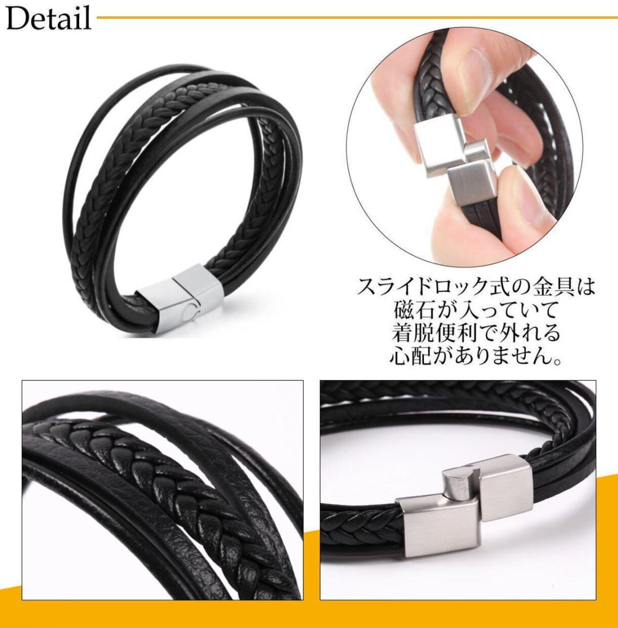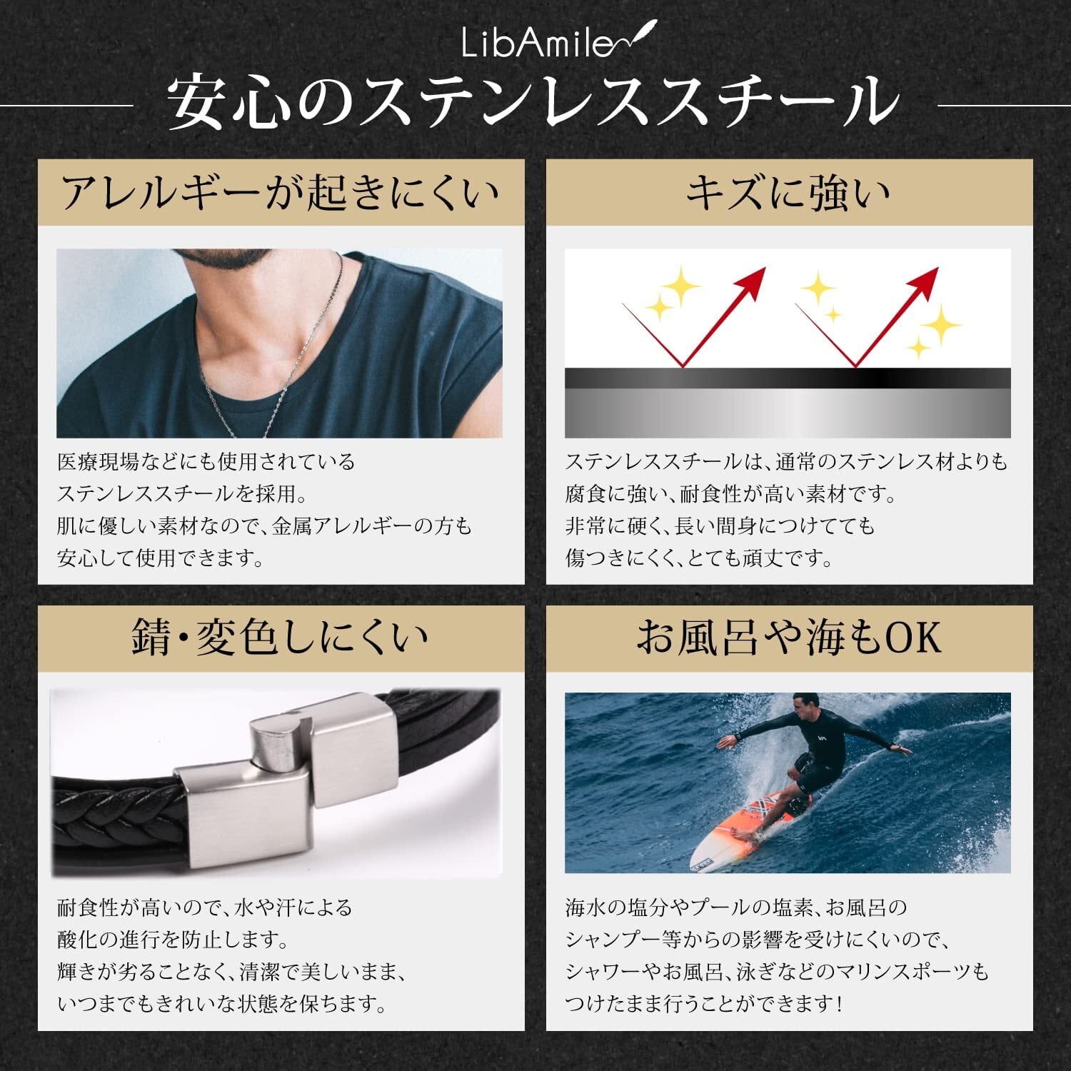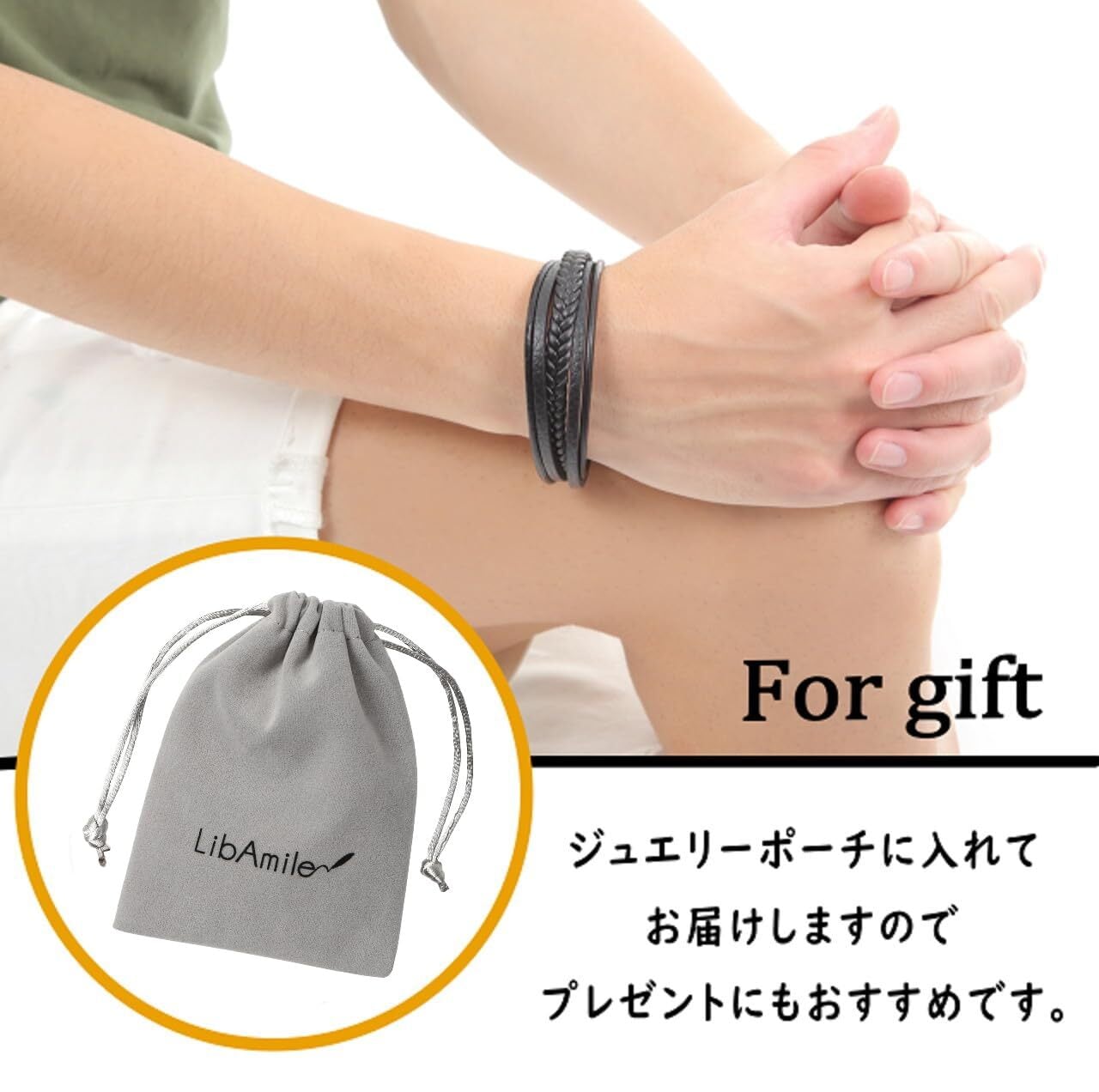 [リブアマイル] 【正規品】レザーブレスレット メンズ 多重 ブラック ペアブレスレット 牛革 腕輪 ジュエリーポーチ付き メンズ