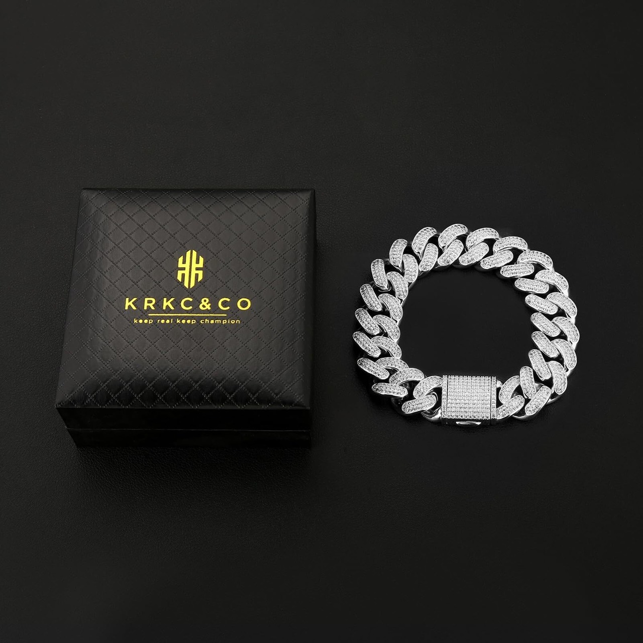 KRKC&CO 喜平ブレスレット ジルコニア マイアミ キューバンブレスレット 12/18mm メンズ ブレス 14K金メッキ CZダイヤ 太目 男性 腕輪 ヒップホップ ストリート かっこいい アクセサリー