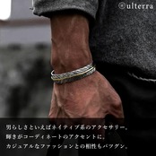 【男らしさをPRするネイティブ系アクセ】シンプル系やハード系などメンズアクセサリーにも様々なスタイルがありますが、男らしいインパクトを狙うならあえてネイティブ系がおすすめ。カジュアルやフォーマル問わずどんなファッションにも合わせやすく、それでいて手首周りに華やかさとインパクトを与えてくれます。特にこの羽根のモチーフのバングルは昔からの定番のアイテムでもあるので、ハードすぎたり、悪目立ちすることなく、コーディネートに自然に溶け込んでくれます。