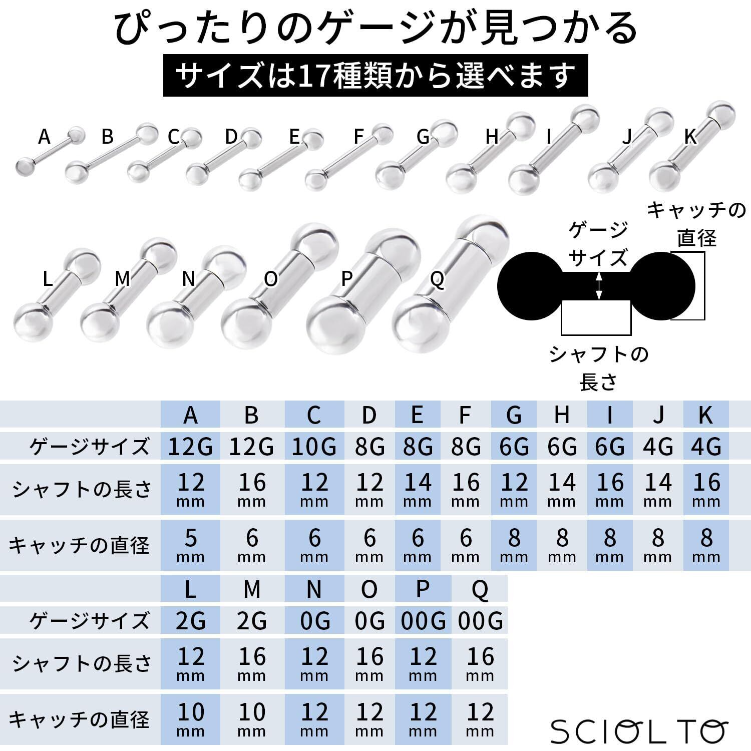 [§SCIOL TO] (ショルト) ストレートバーベル ボディピアス [12G~00G] 拡張 耳たぶ 軟骨ピアス ステンレス