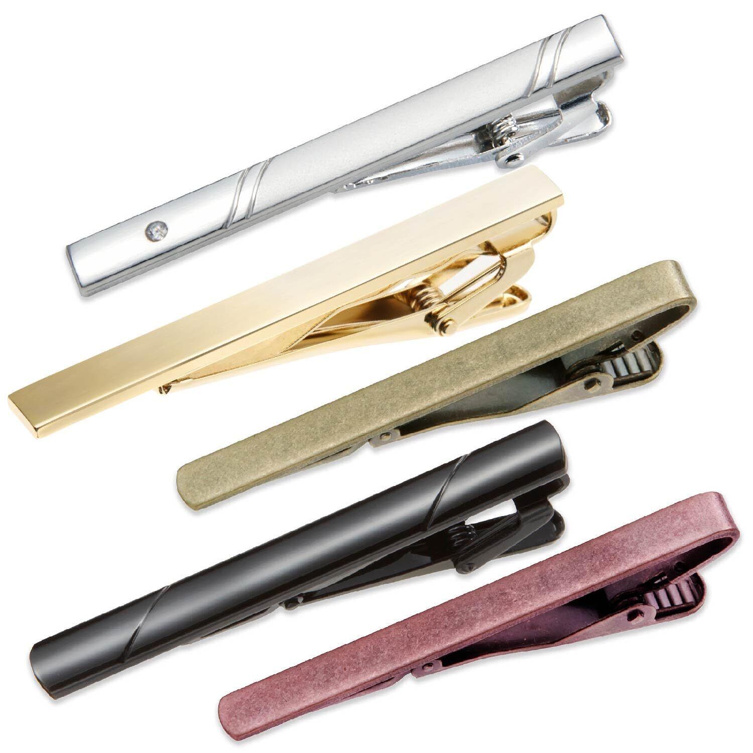 【男性用の紳士小物】お洒落なタイピン5個セットです。付け方はネクタイに挟むだけ。スーツスタイルに個性を出すことができます。カフスボタン、ポケットチーフ、カラーピンなどと組み合わせると、より華やかさを演出できます。