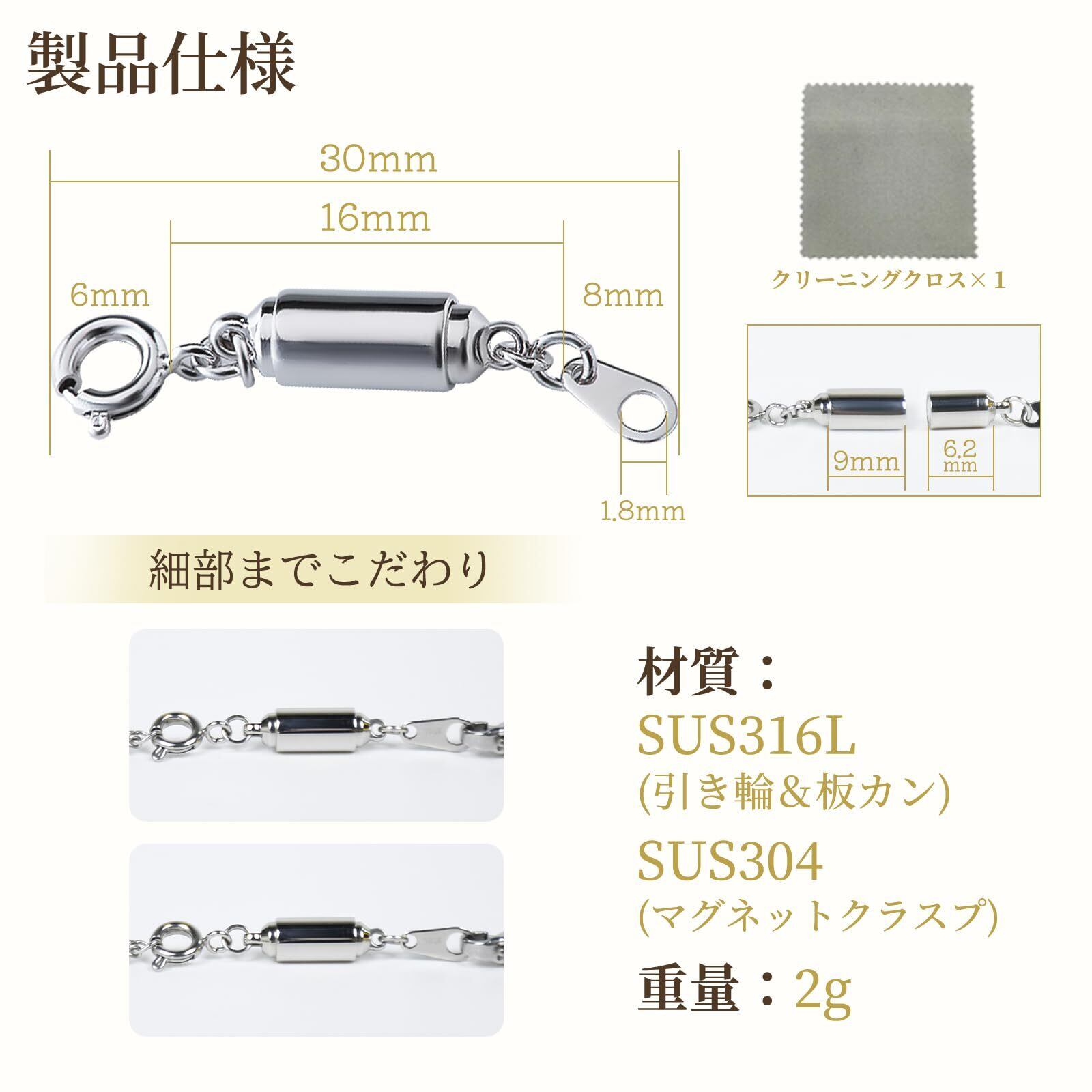 風織商社 ネックレス マグネット留め具 2個セット マグネットクラスプ 強力 着脱式 マグネット留め具 磁気クラスプ 磁気留め具 アクセサリーパーツ チェーン止め 差し込み式 外れない 取付簡単 ステンレス製 ネックレス 金属アレルギー対応 (二枚入り)