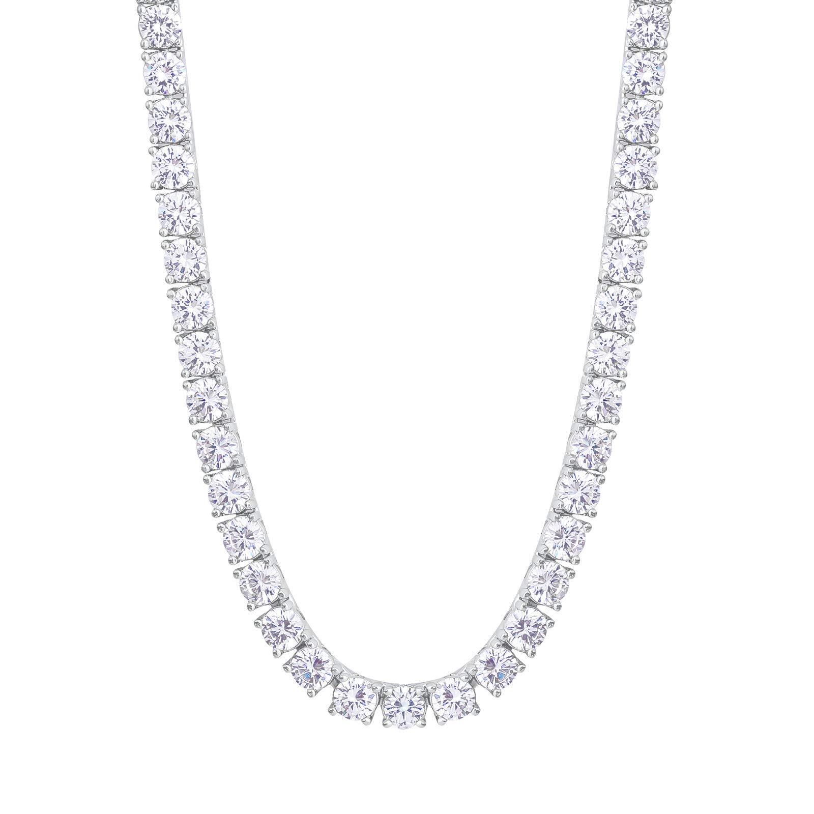 【存在感抜群の一品】幅5mmのCZダイヤストーンを80粒以上配置したラグジュアリーなテニスネックレスです。リッチな印象を与えるテニスチェーンは単体でも存在感抜群の一品。定番チェーンに物足りなさを感じている人にぜひお勧めです。